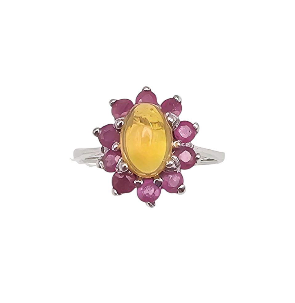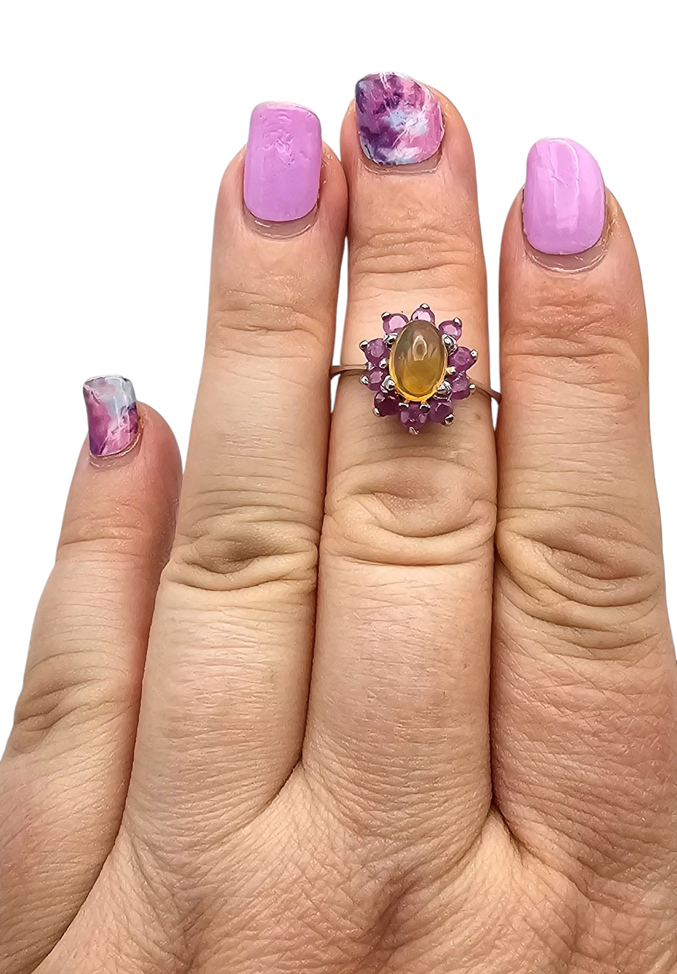 Lab Ruby Angelite Sterling Silver Cocktail Ring Size 7.25 3.3 G