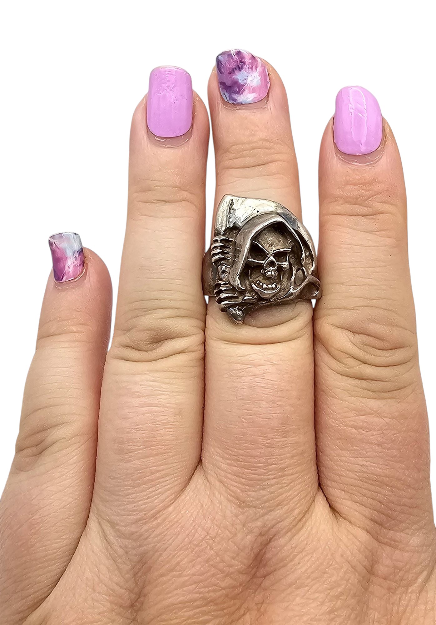 Sterling Silver Grim Reaper Undertaker Ring Size 8.25 10.7 G
