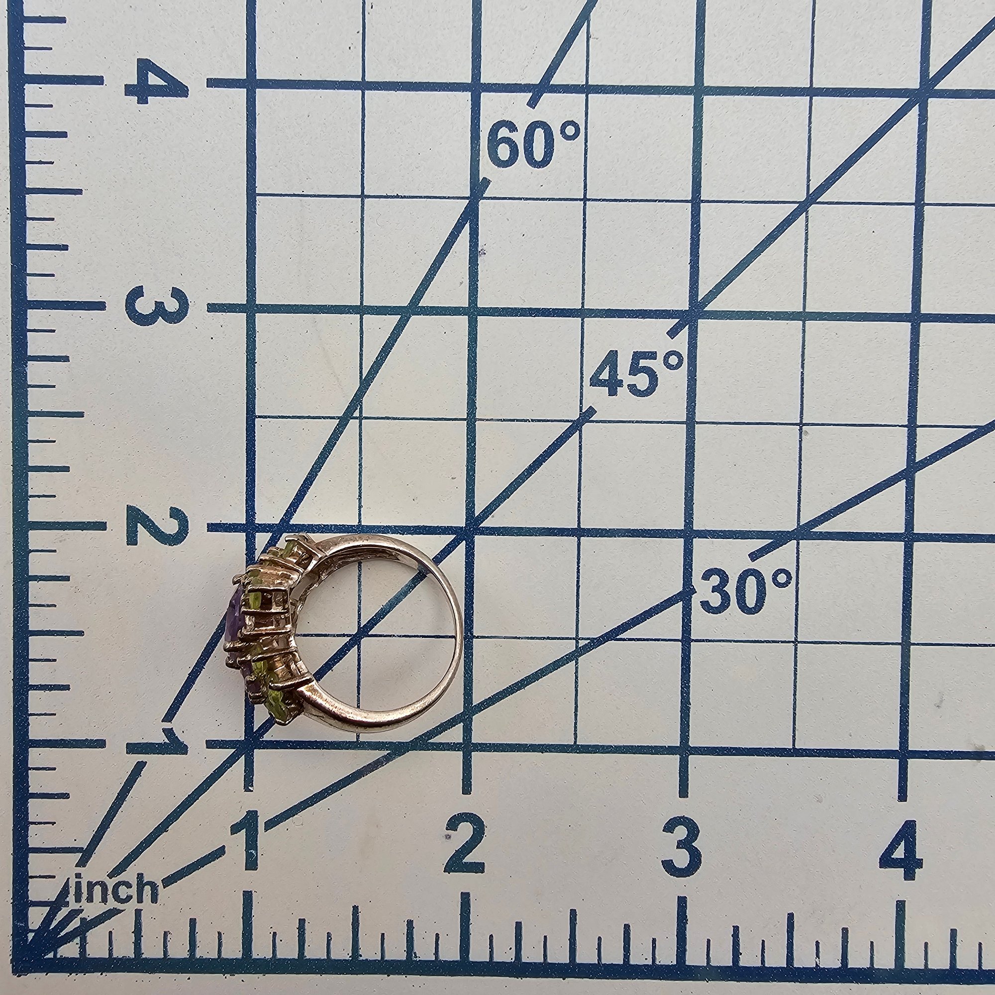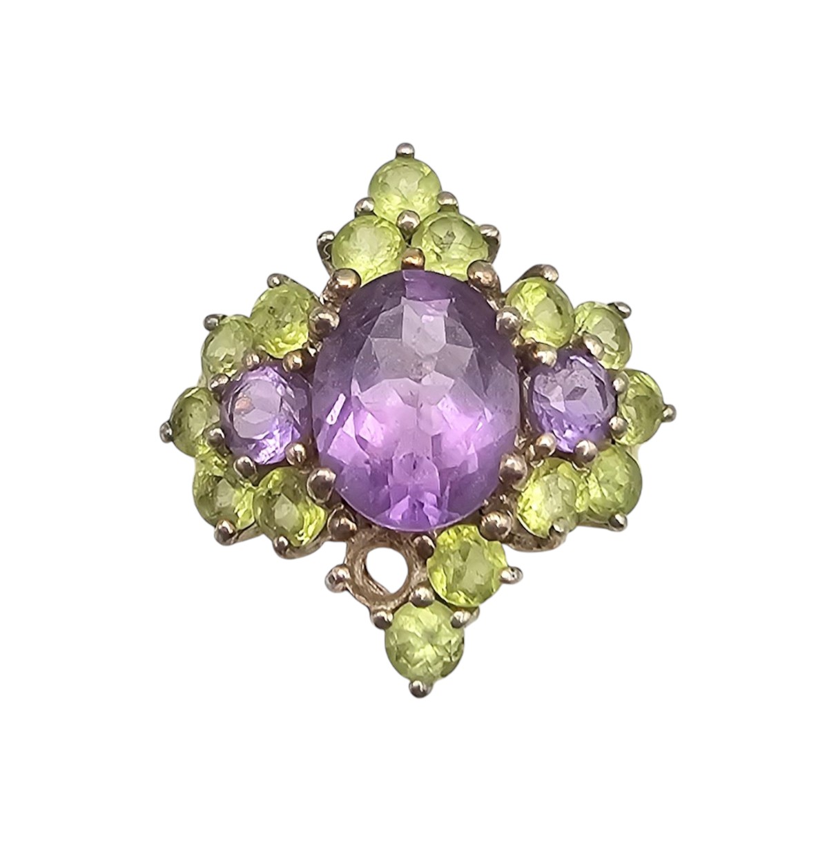 Amethyst Peridot Sterling Silver Cocktail Ring Size 7 5.7 G as is missing one stone