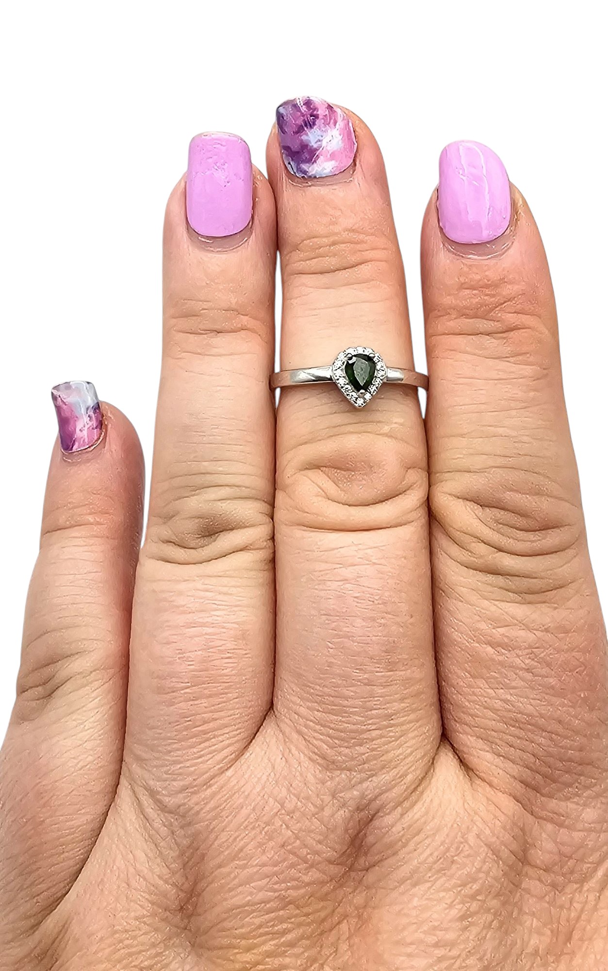 Lab Emerald Sterling Silver Cocktail Ring Size 7.25 2.1 G