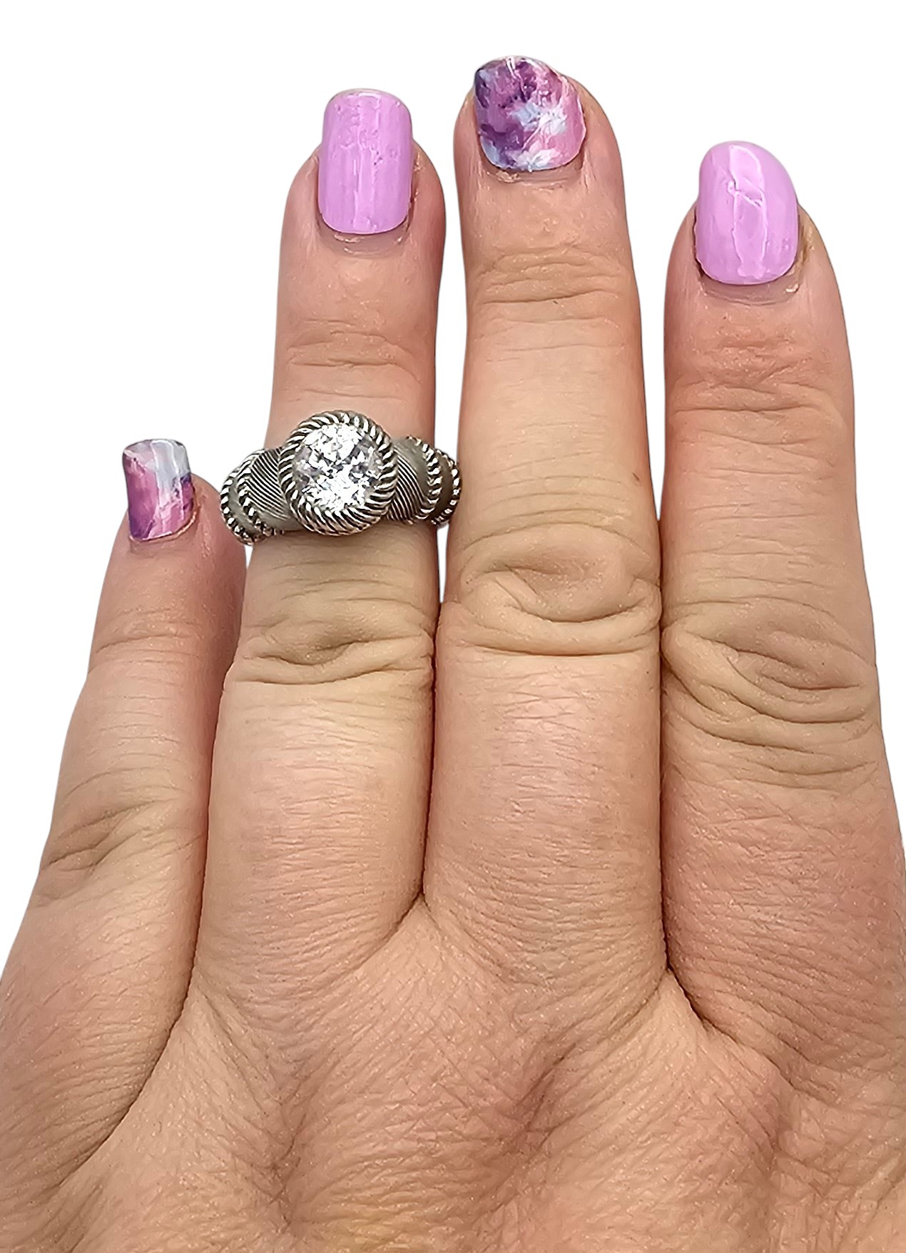 Judith Ripka Cubic Zirconia Sterling Silver Cocktail Ring Size 5.75 8.1 G