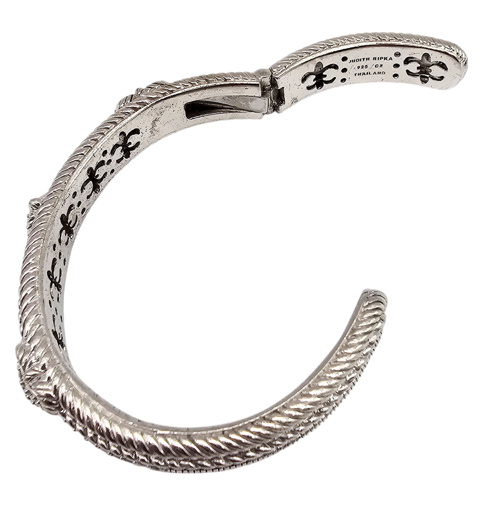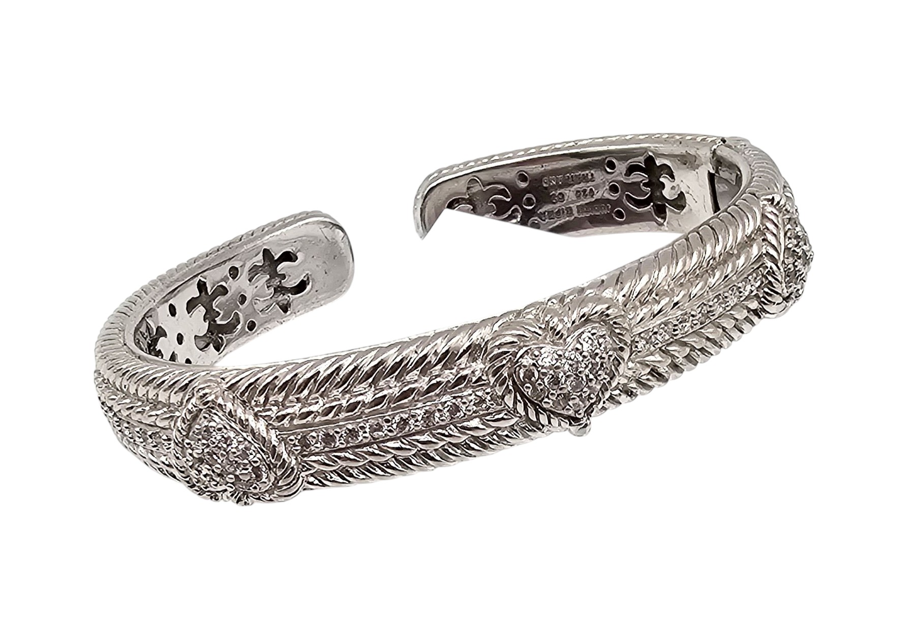 Judith Ripka Cubic Zirconia Sterling Silver Hinge Heart Cuff Bracelet 48.3 G