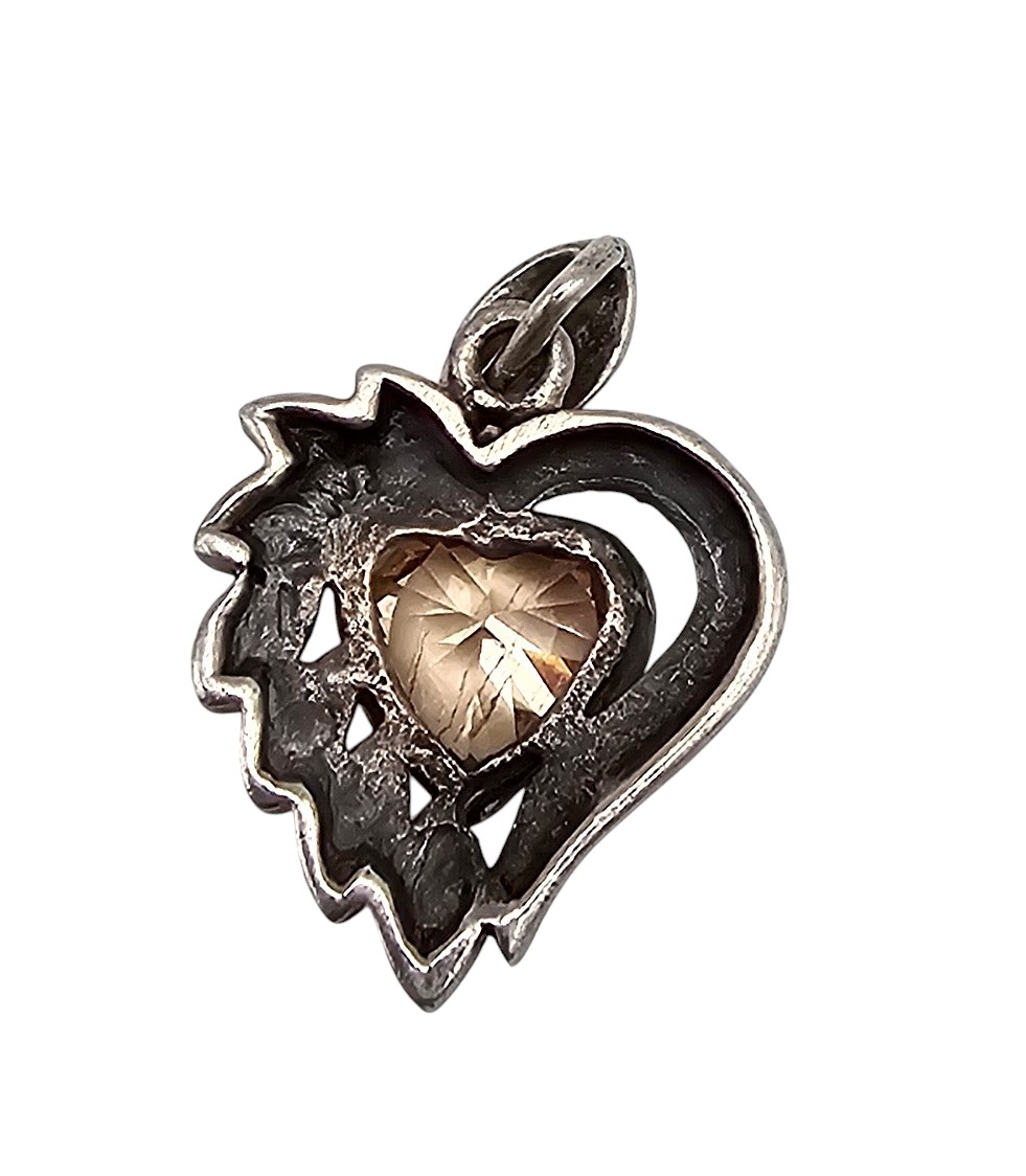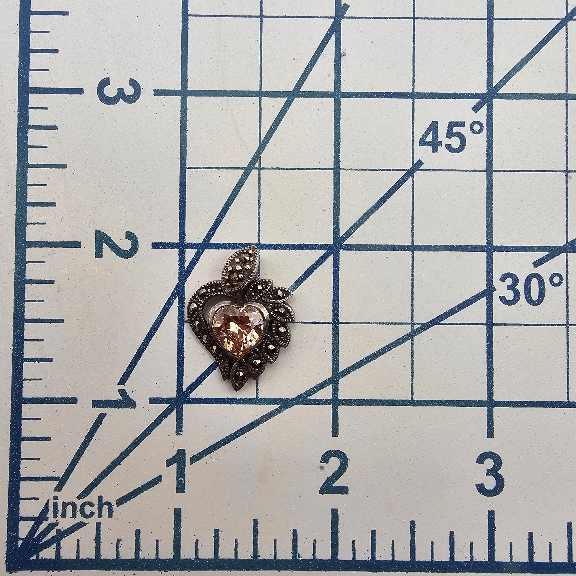 Rhinestone Marcasite Sterling Silver Heart Pendant 3.2 G
