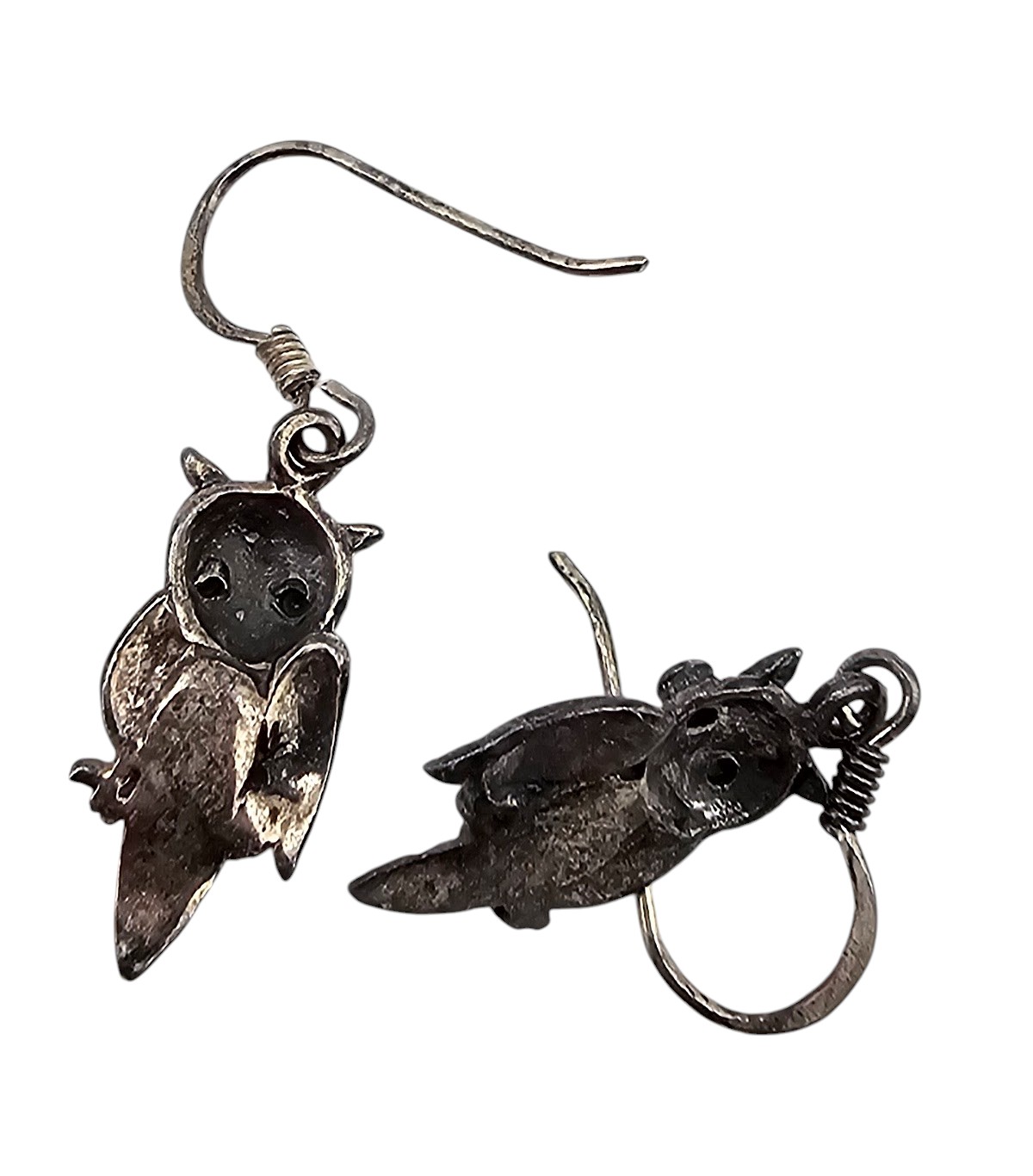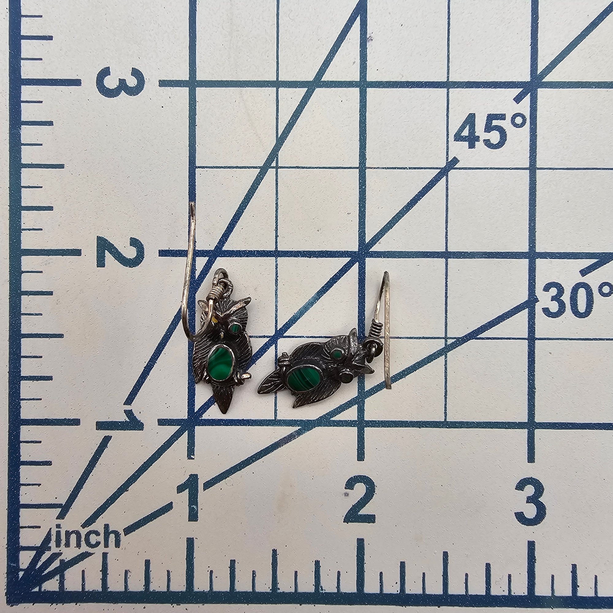 Malachite Sterling Silver Owl Drop Dangle Earrings 2.7 G]
