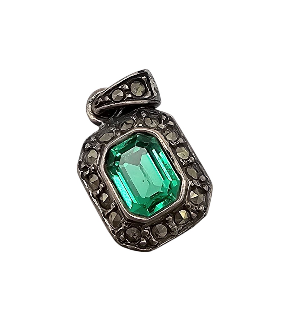 Italy GA Rhinestone Marcasite Sterling Silver Pendant 3 G