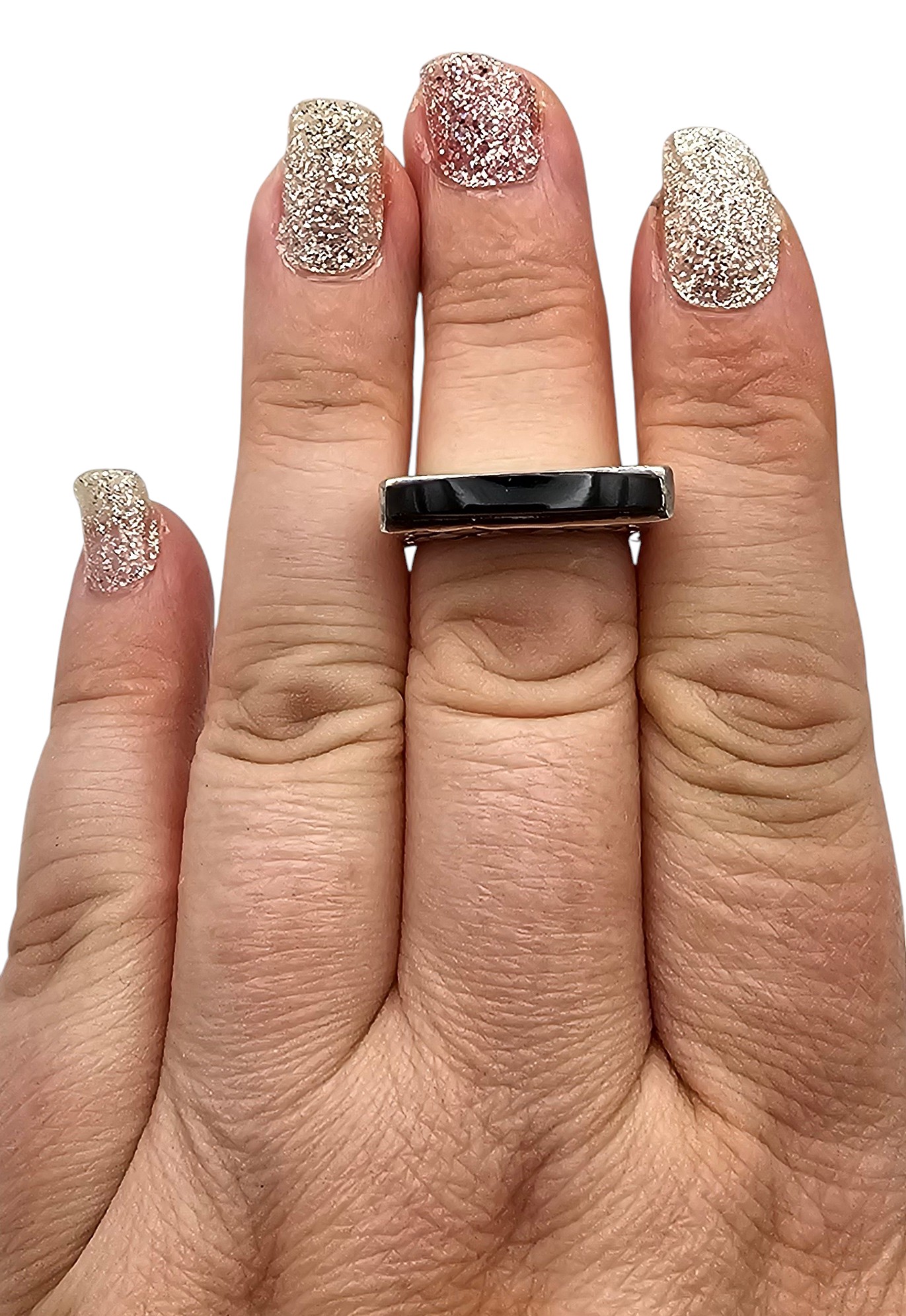 Onyx Sterling Silver Ring Size 7 7.4 G