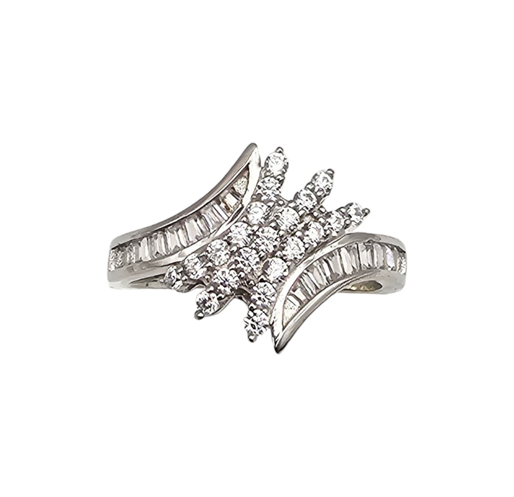 Signed Cubic Zirconia Sterling Silver Cocktail Ring Size 7.5 3.4 G
