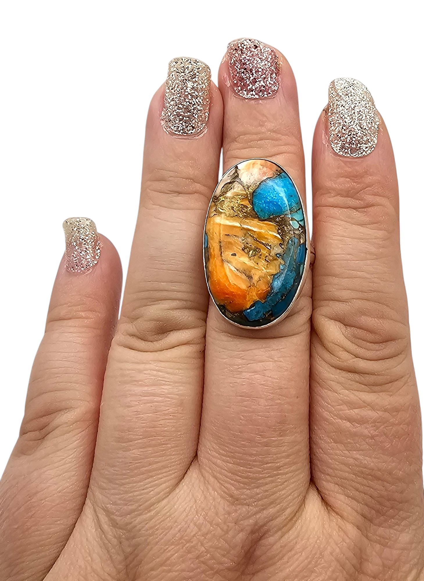 Glass Stone Sterling Silver Ring Size 7.75 7.9 G