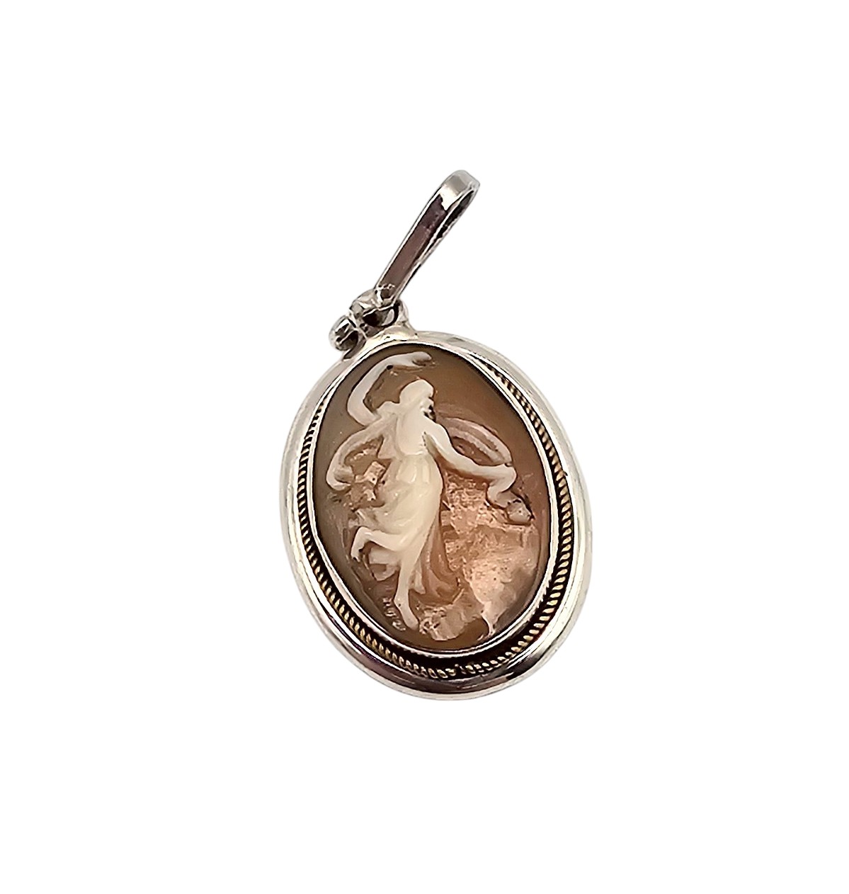 Shell Carved Cameo Sterling Silver Pendant 1.9 G