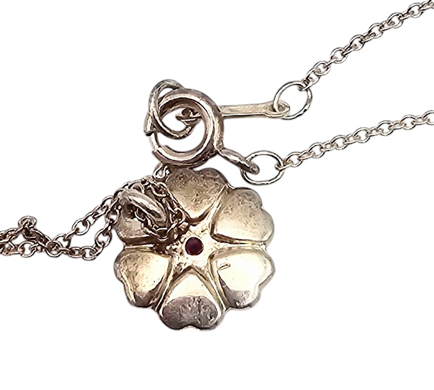 Tiffany & Co. Sterling Silver Pink Topaz Flower Necklace 2.7 G
