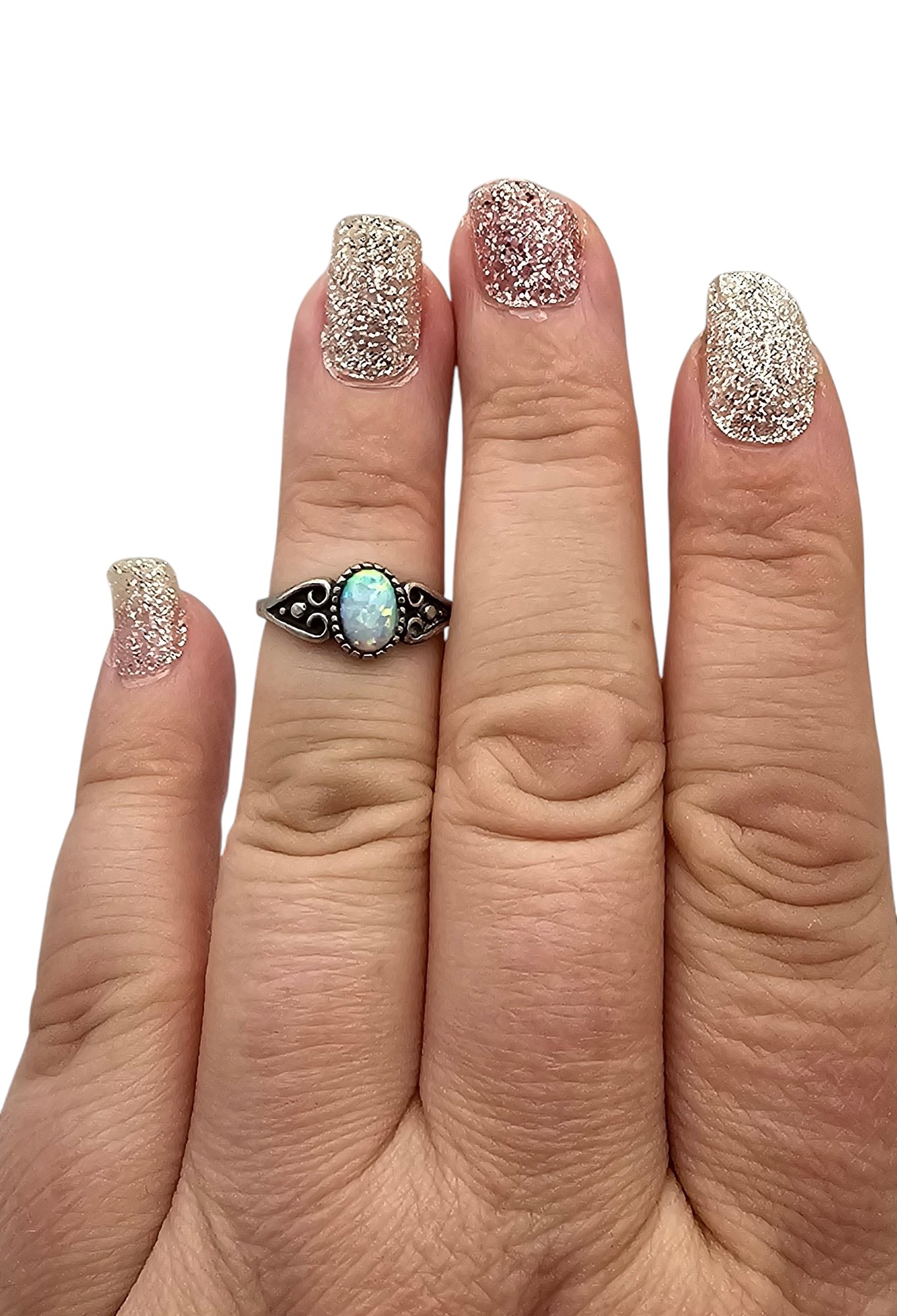 Opal Sterling Silver Cocktail Ring Size 5 1.9 G