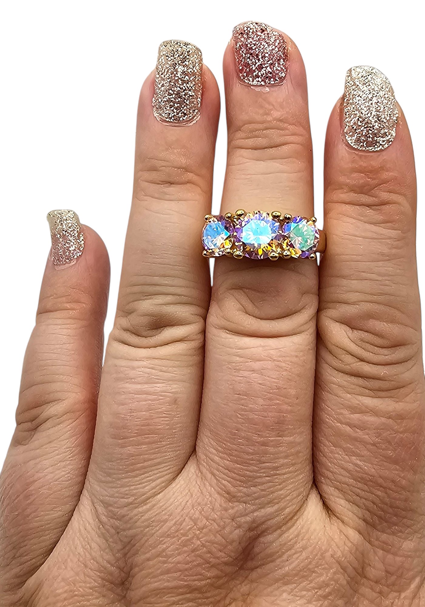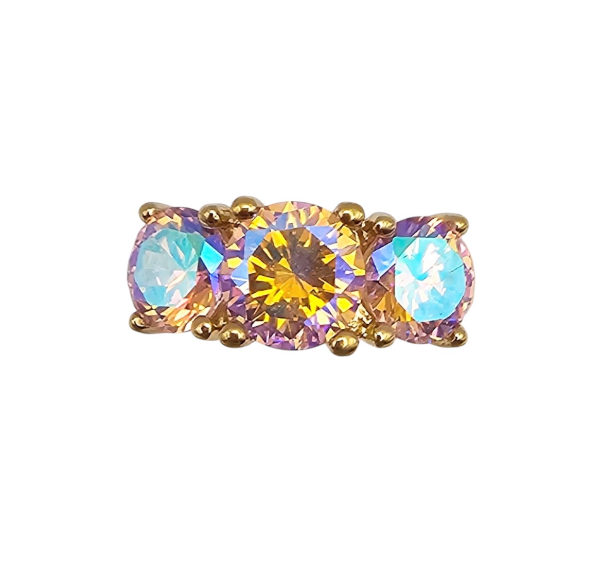UTC Iridescent Rhinestone Gold Over Sterling Silver Cocktail Ring Size 7.5 7 G