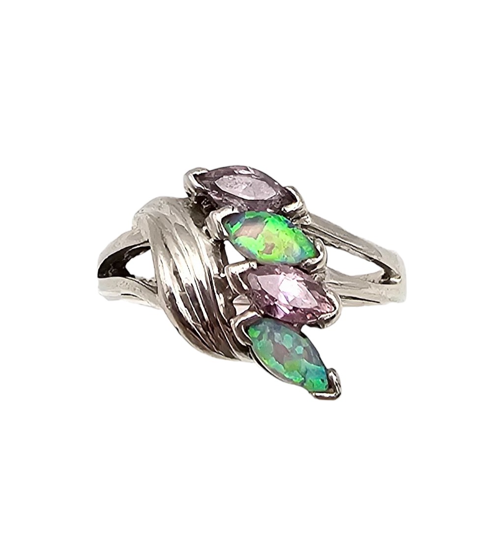 NV Opal Sterling Silver Cocktail Ring Sz 7 3.7 G