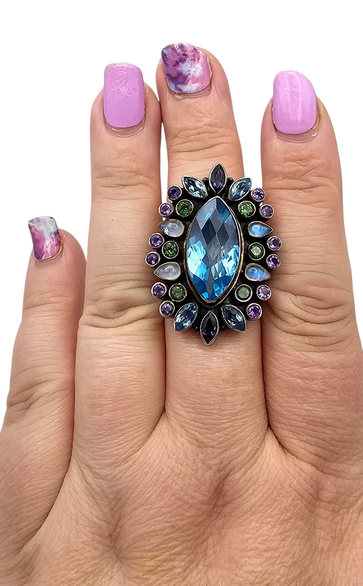 Nicky Butler Moonstone Amethyst Tourmaline Sterling Silver Cocktail Ring Size 9.5 14.7 G