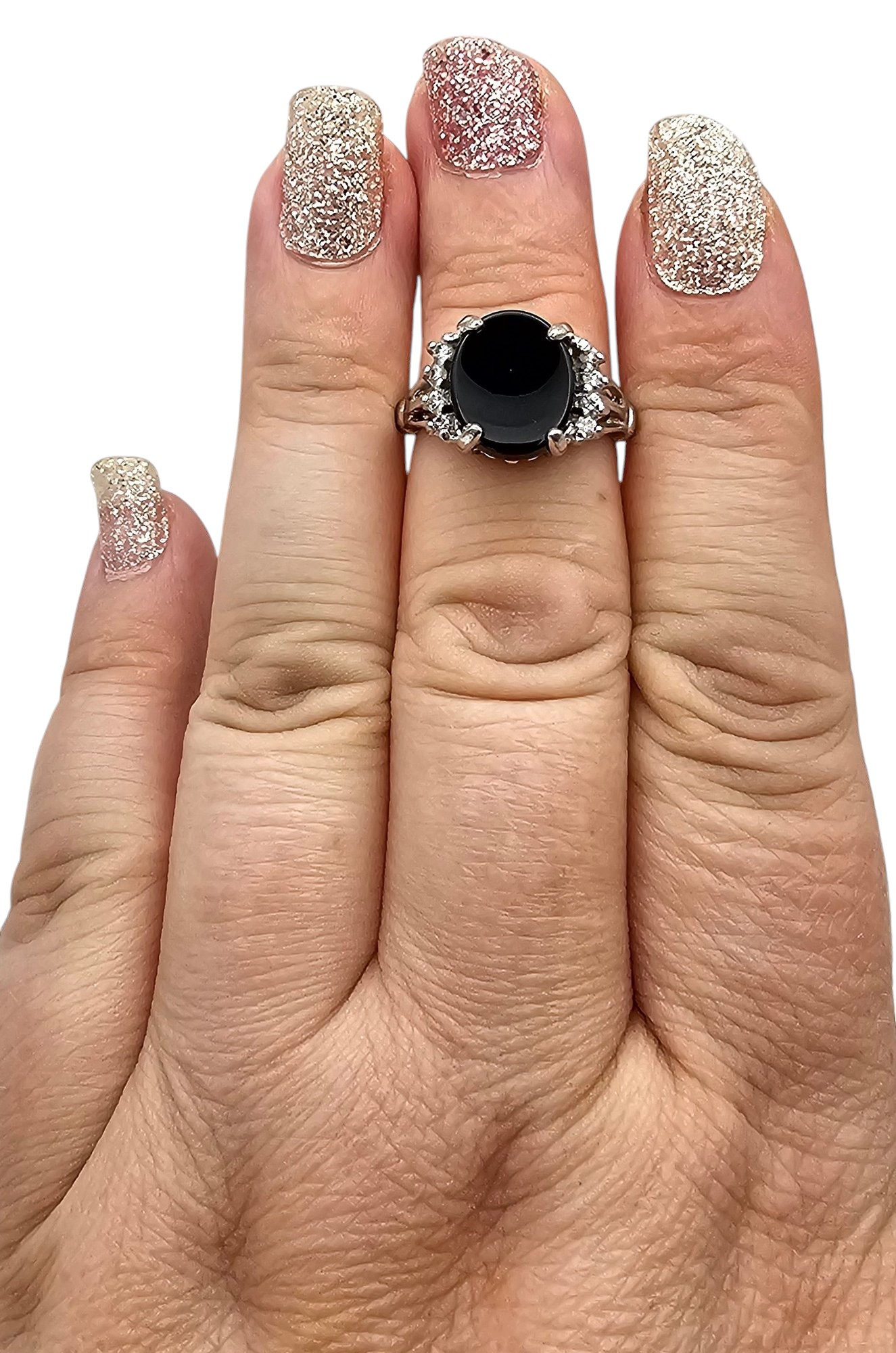Lind Onyx Sterling Silver Cocktail Ring Size 6.5 4.2 G