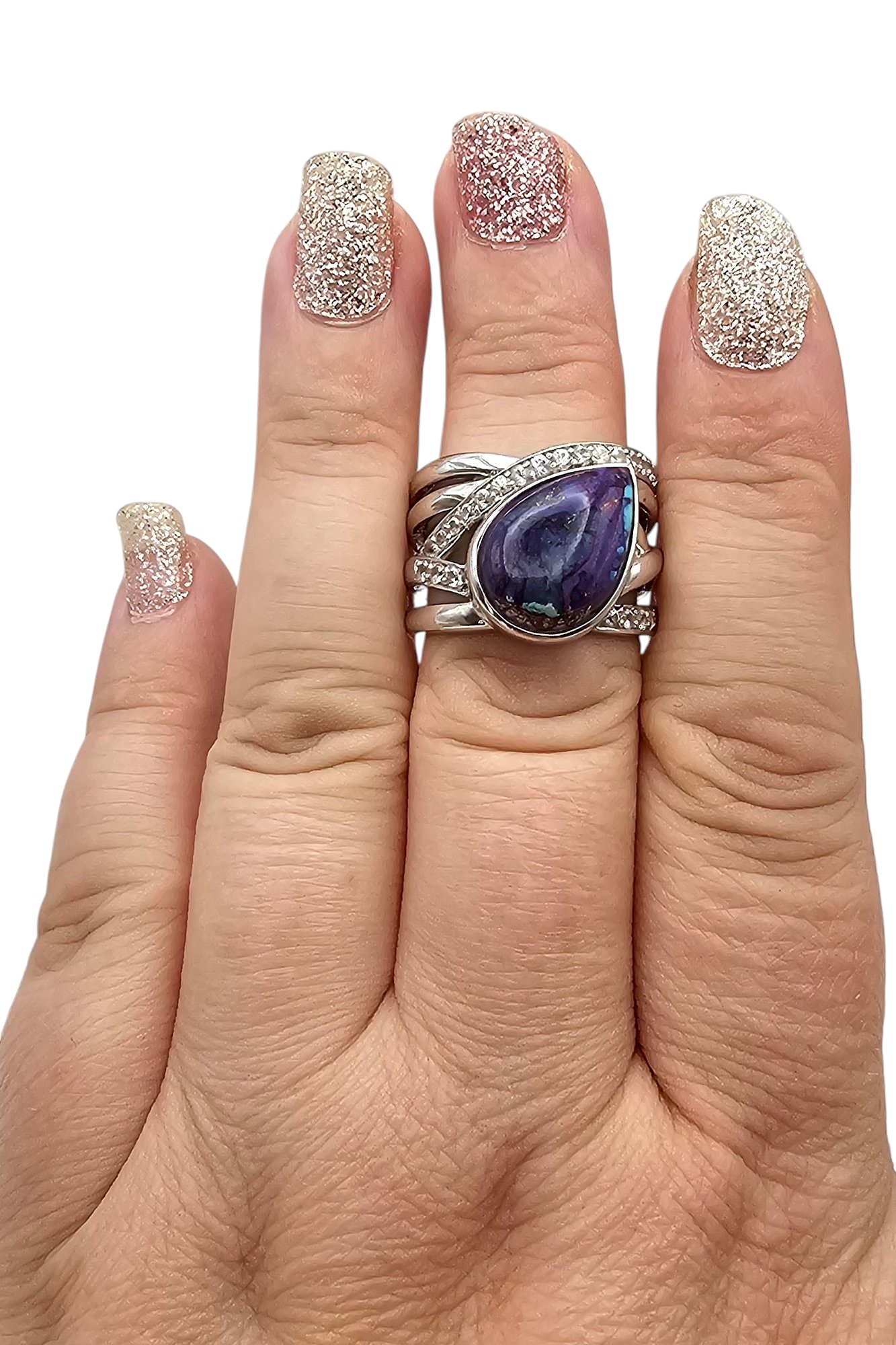 Signed Diamond Natural Stone Sterling Silver Ring Size 7.5 11.4 G