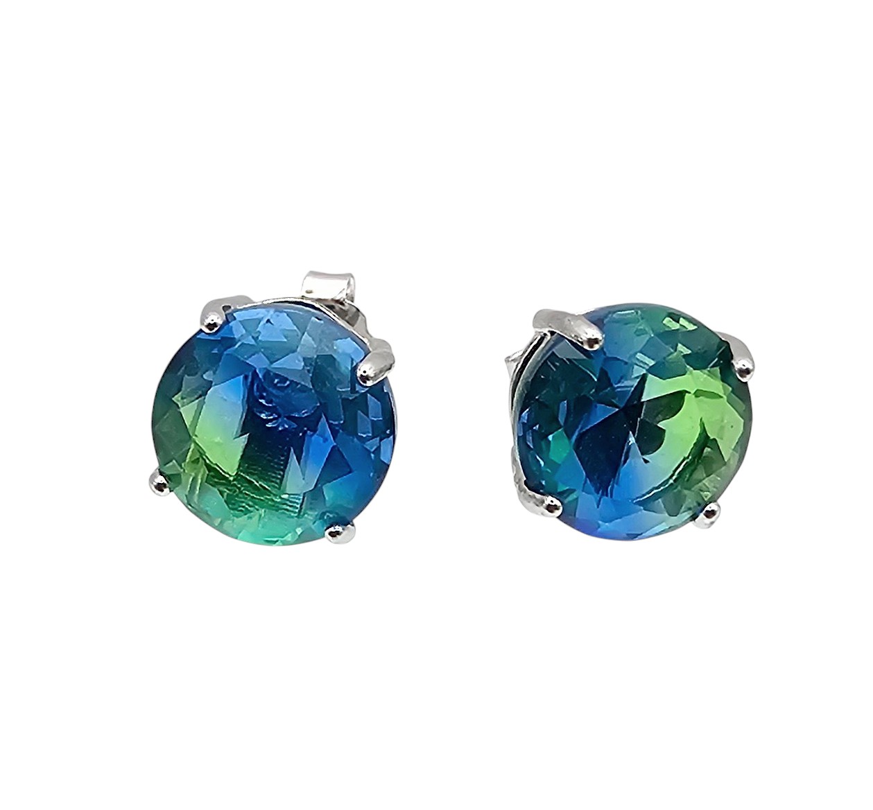 Blue Green Rhinestone Sterling Silver Earrings 1.4 G