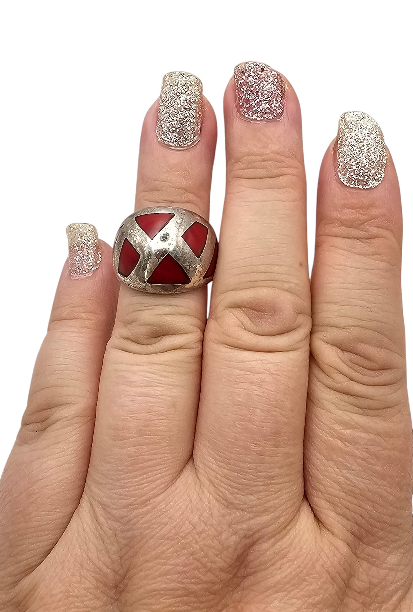GFJ Coral Sterling Silver Ring Size 5.25 6 G
