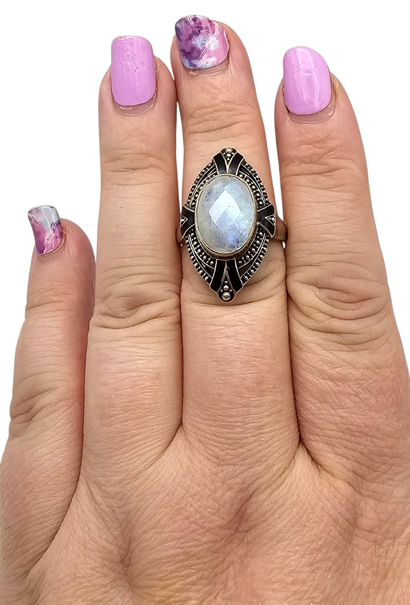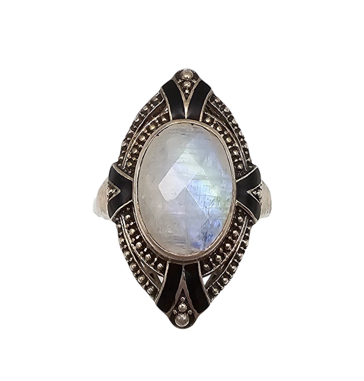 Nicky Butler Moonstone Enamel Sterling Silver Ring Size 8.75 6.8 G