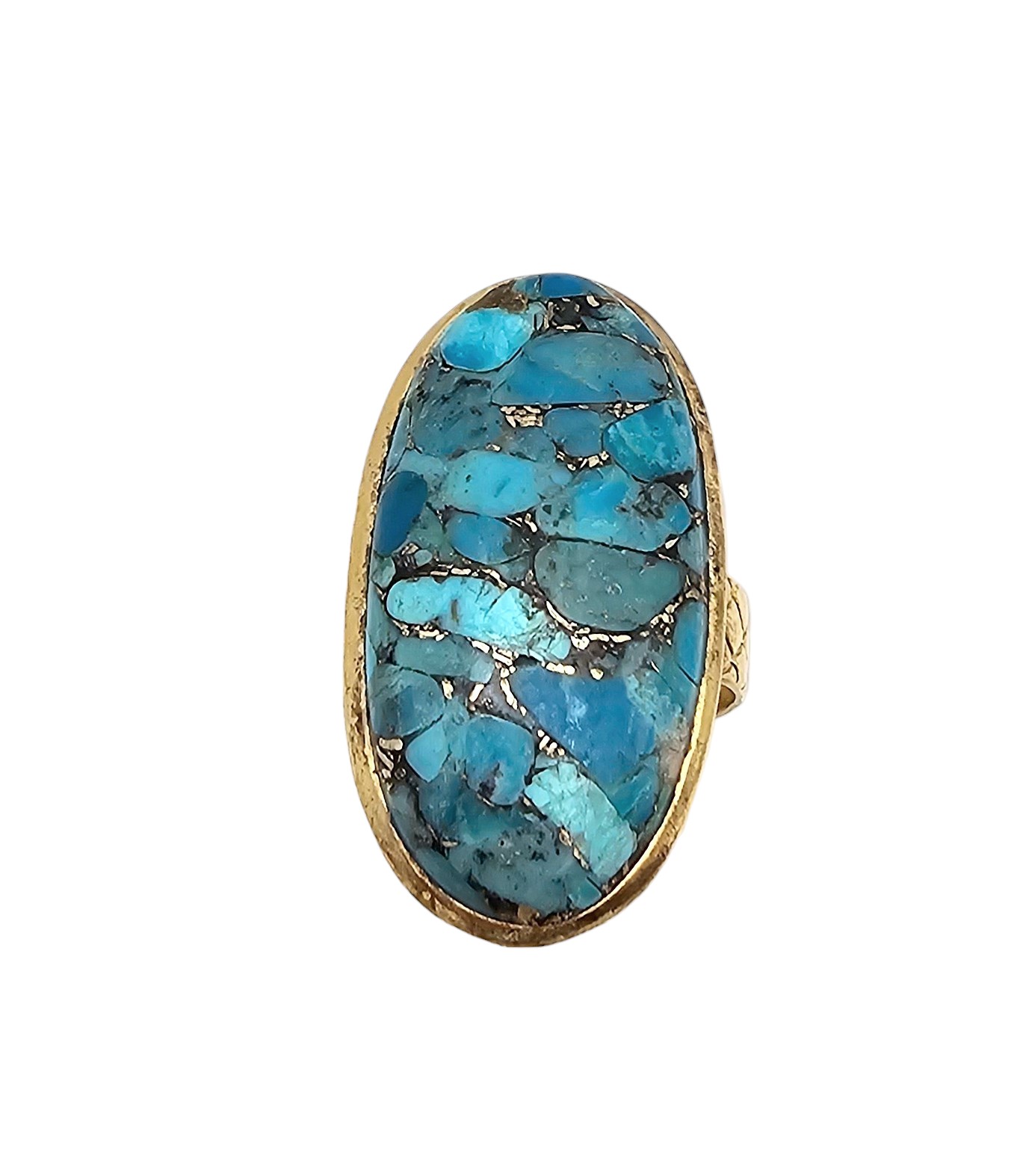 NI B? Turquoise Gold Over Sterling Silver Ring Size 7.5 9.3 G