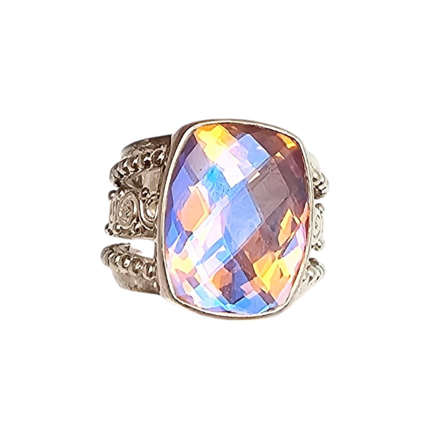 Signed Tourmaline Sterling Silver Cocktail Ring Size 6.75 15.6 G