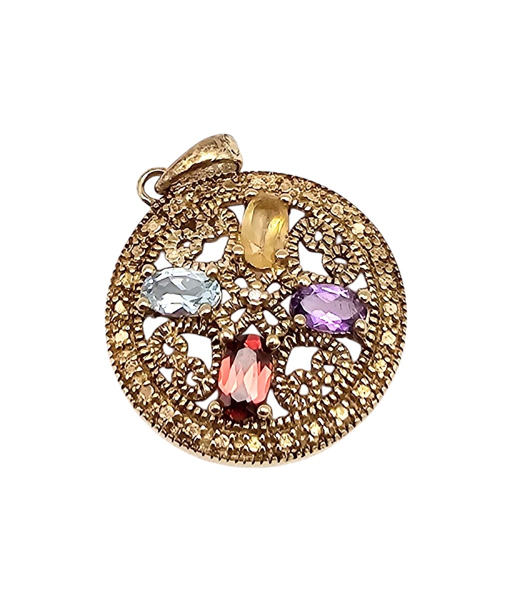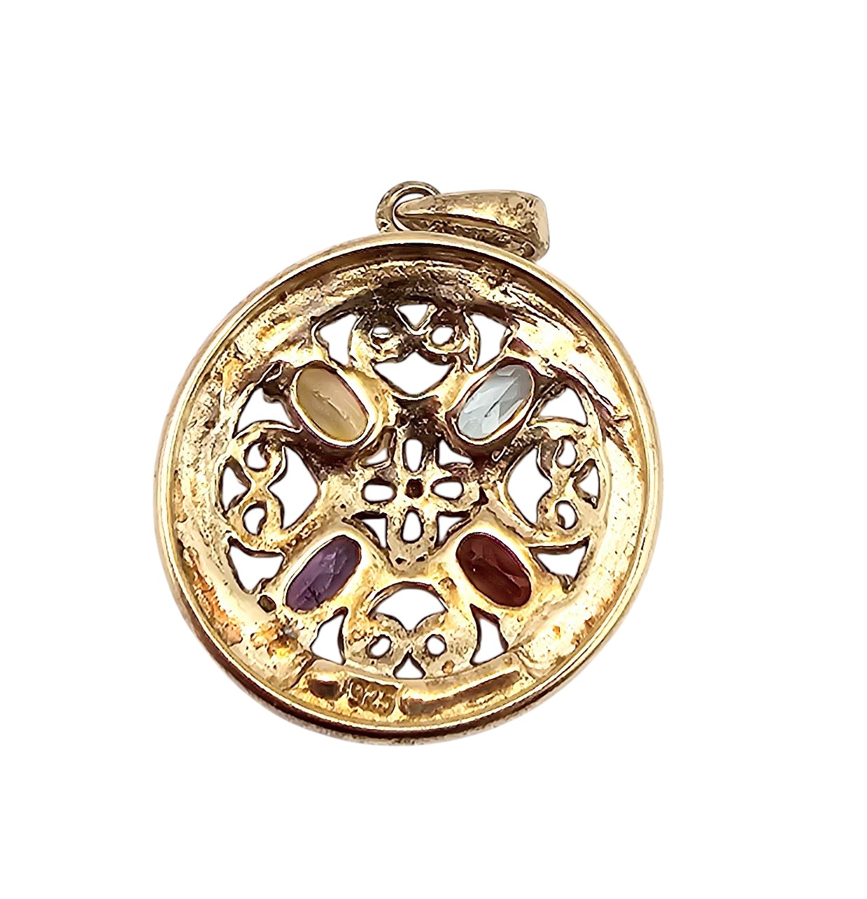 Multi Gemstone Gold Over Sterling Silver Pendant 2.8 G