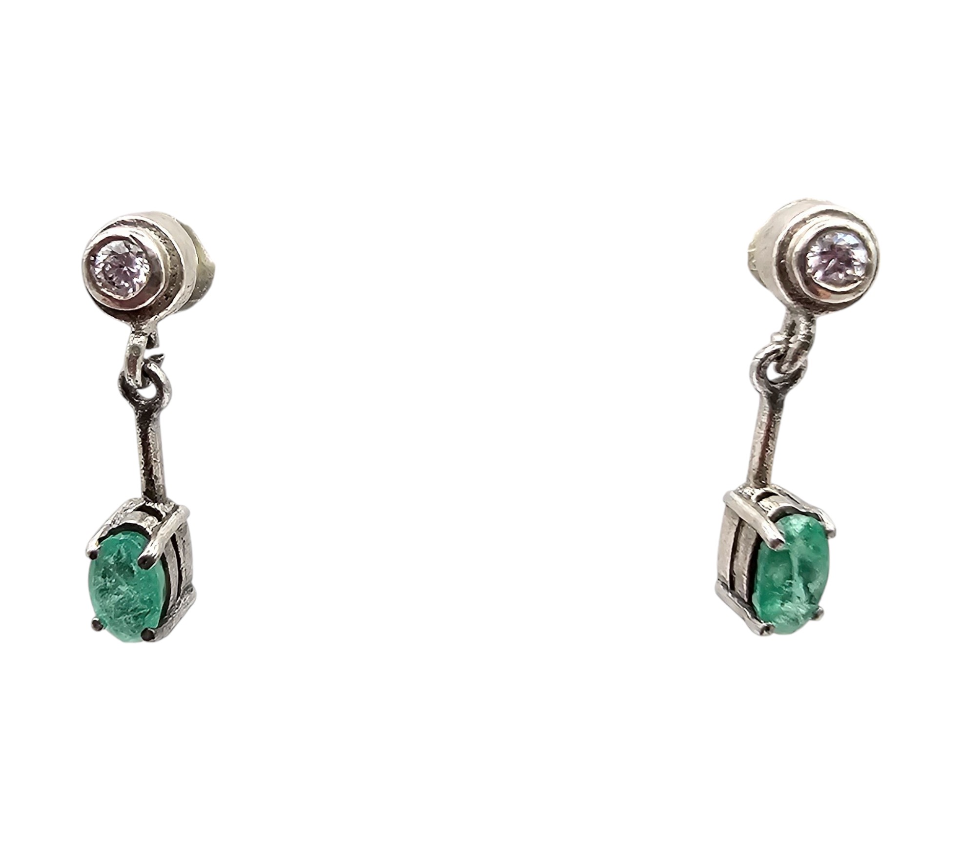 Rhinestone Sterling Silver Drop Dangle Earrings 1.6 G