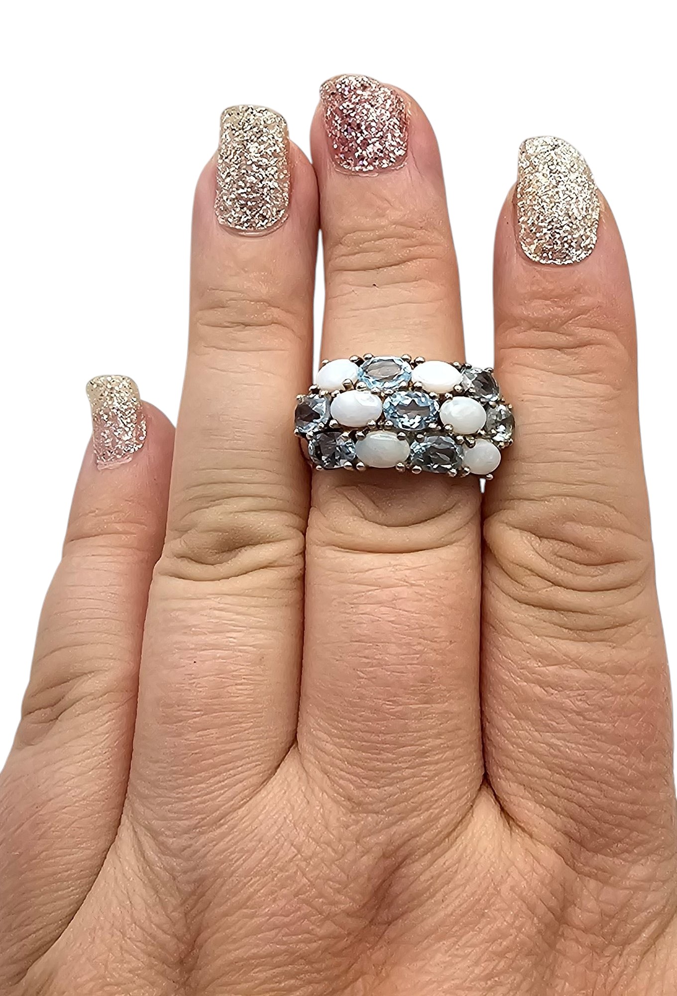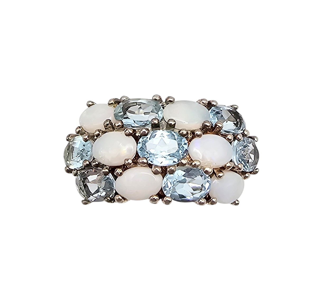 Signed Topaz Opal Sterling Silver Cocktail Ring Size 8.75 7.2 G