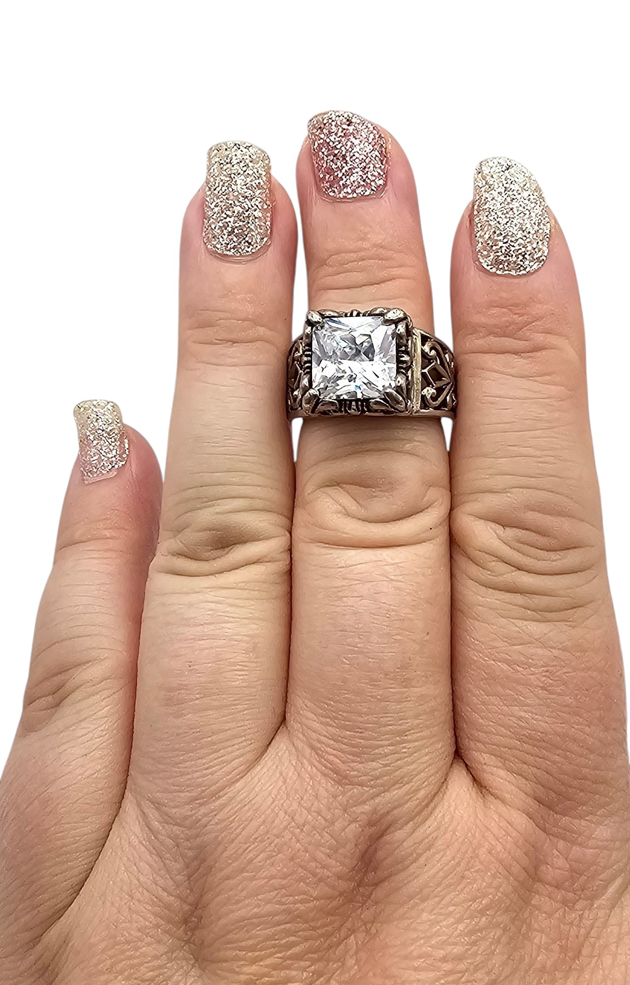 Silpada Rhinestone Sterling Silver Cocktail Ring Size 6.5 7.2 G