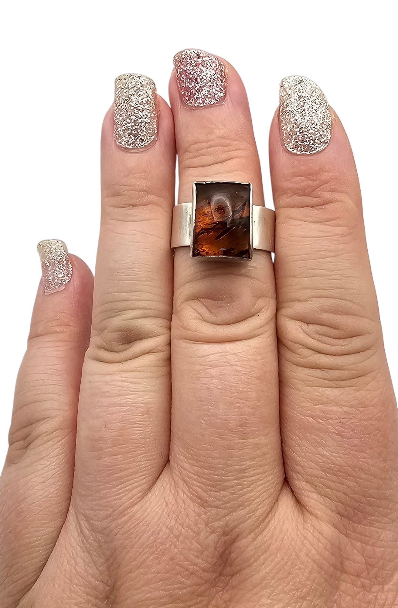 Amber Sterling Silver Ring Sz 8 6.9 G