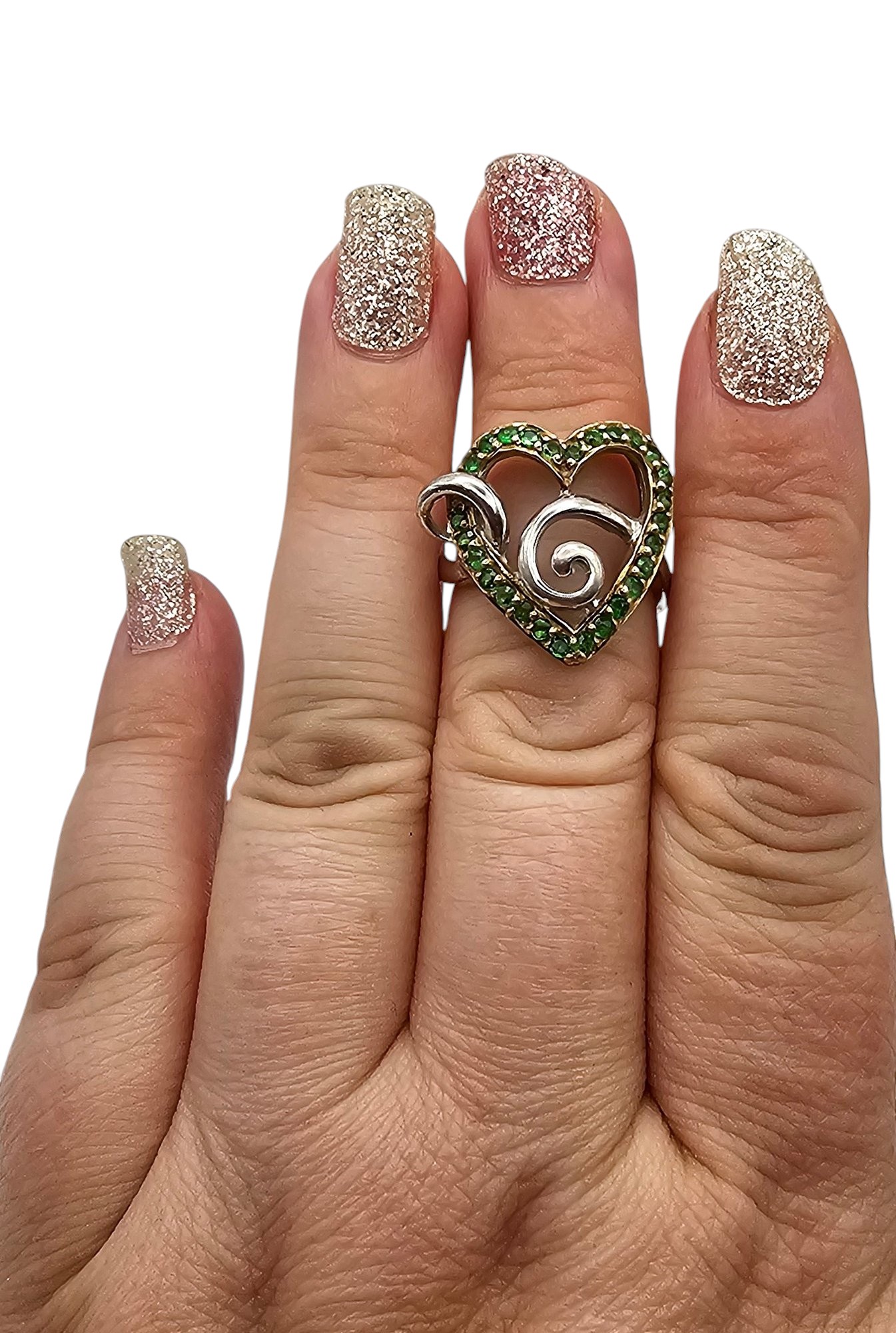 Rhinestone Sterling Silver Heart Cocktail Ring Size 7.5 5.7 G