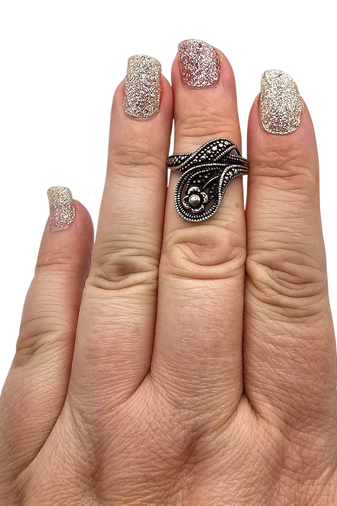 Sterling Silver Flower Ring Size 6.75 3.6 G
