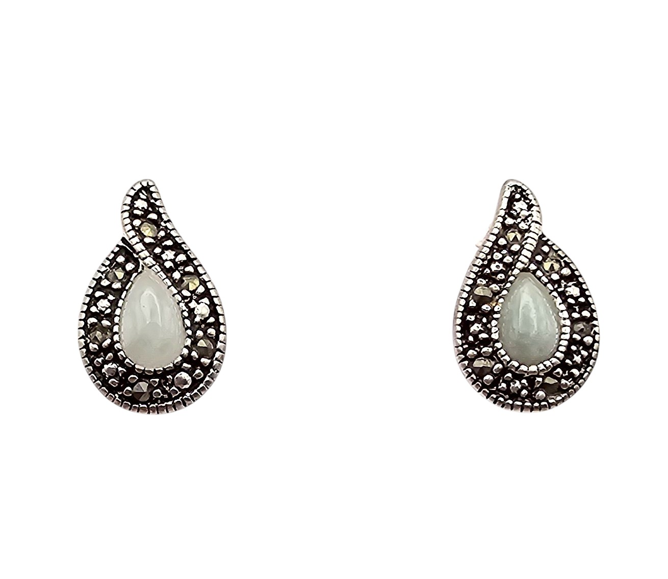NV Agate Marcasite Sterling Silver Earrings 2.6 G