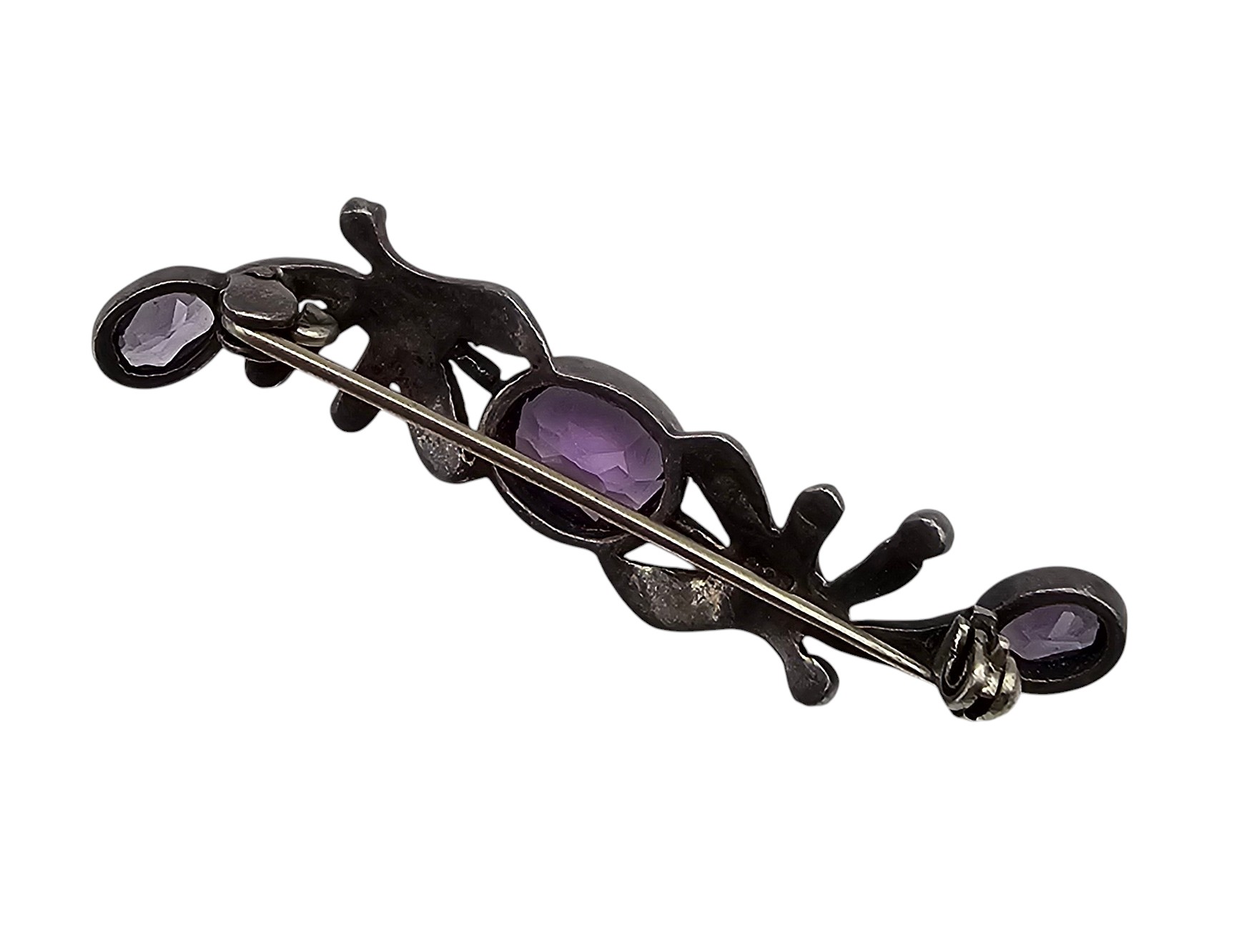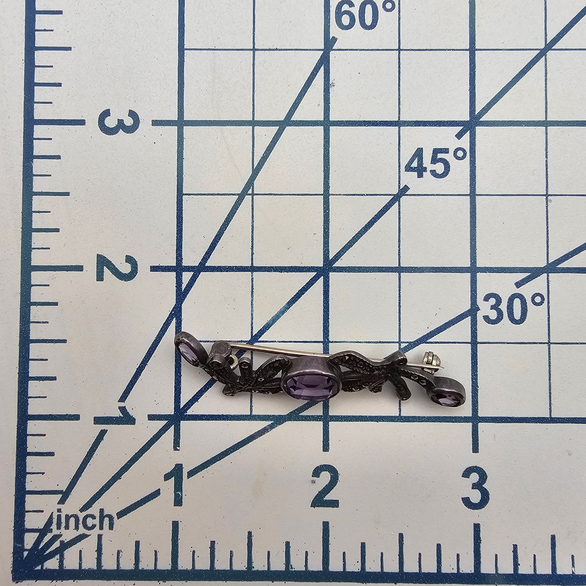 Amethyst Marcasite Sterling Silver Bar Pin 4.4 G