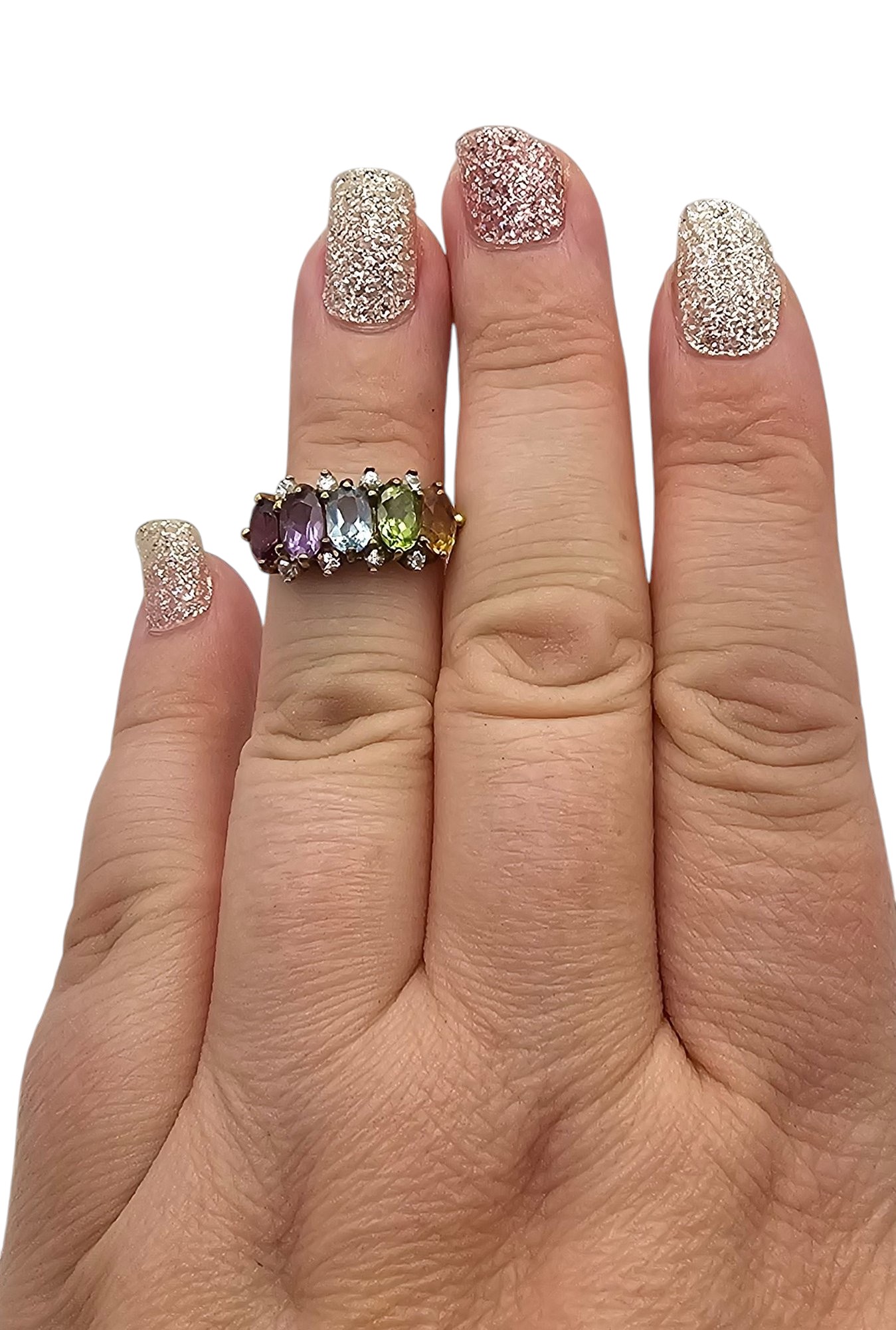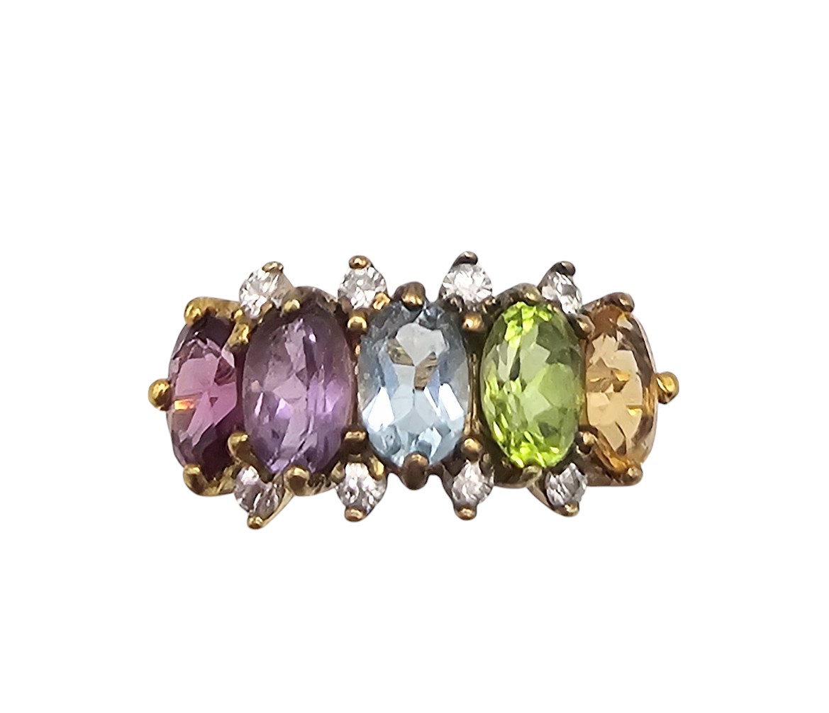 F Multi Gemstone Gold Over Sterling Silver Cocktail Ring Size 5.5 3.3 G