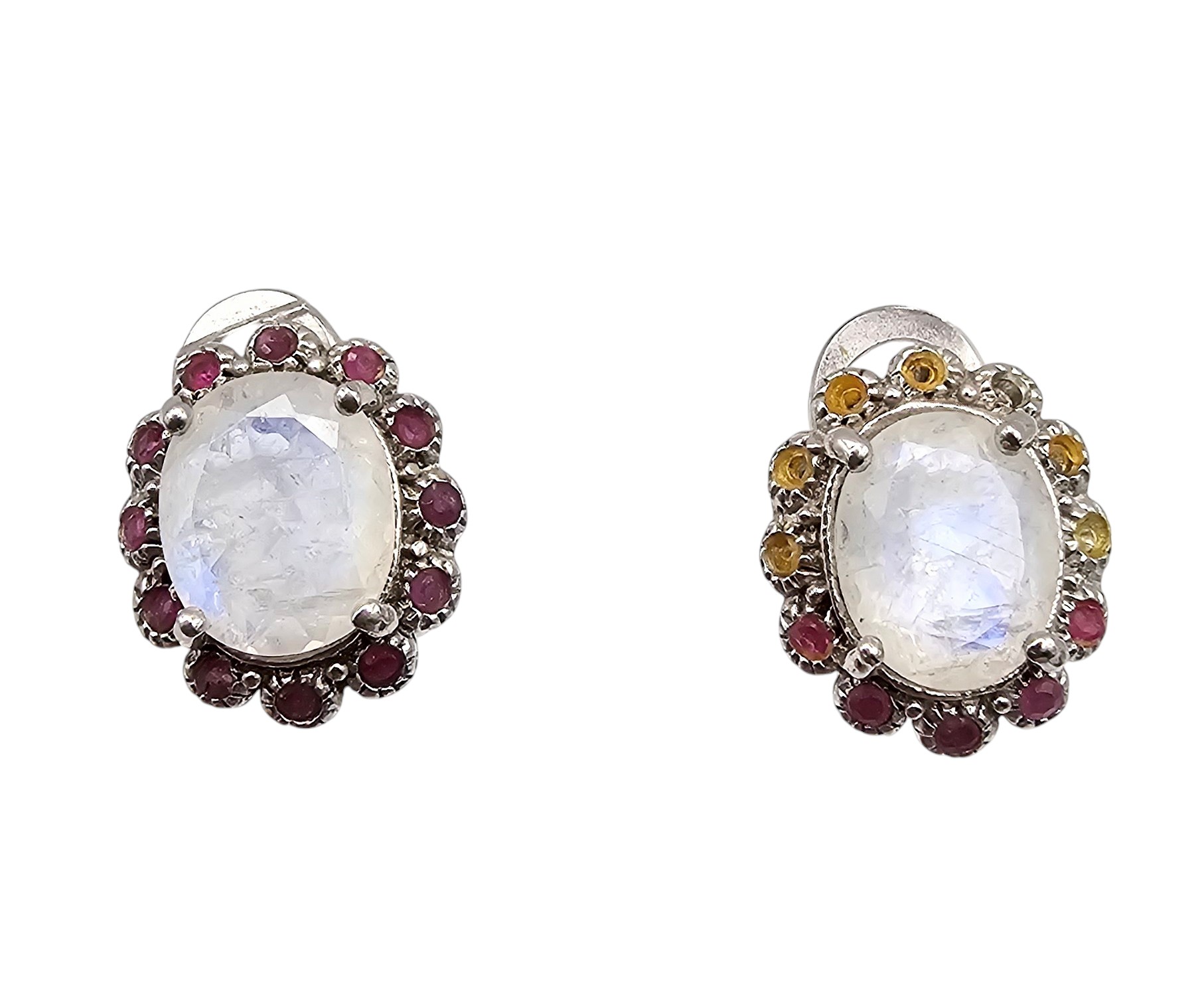 Moonstone Sterling Silver Earrings 7.1 G as is missing some stones