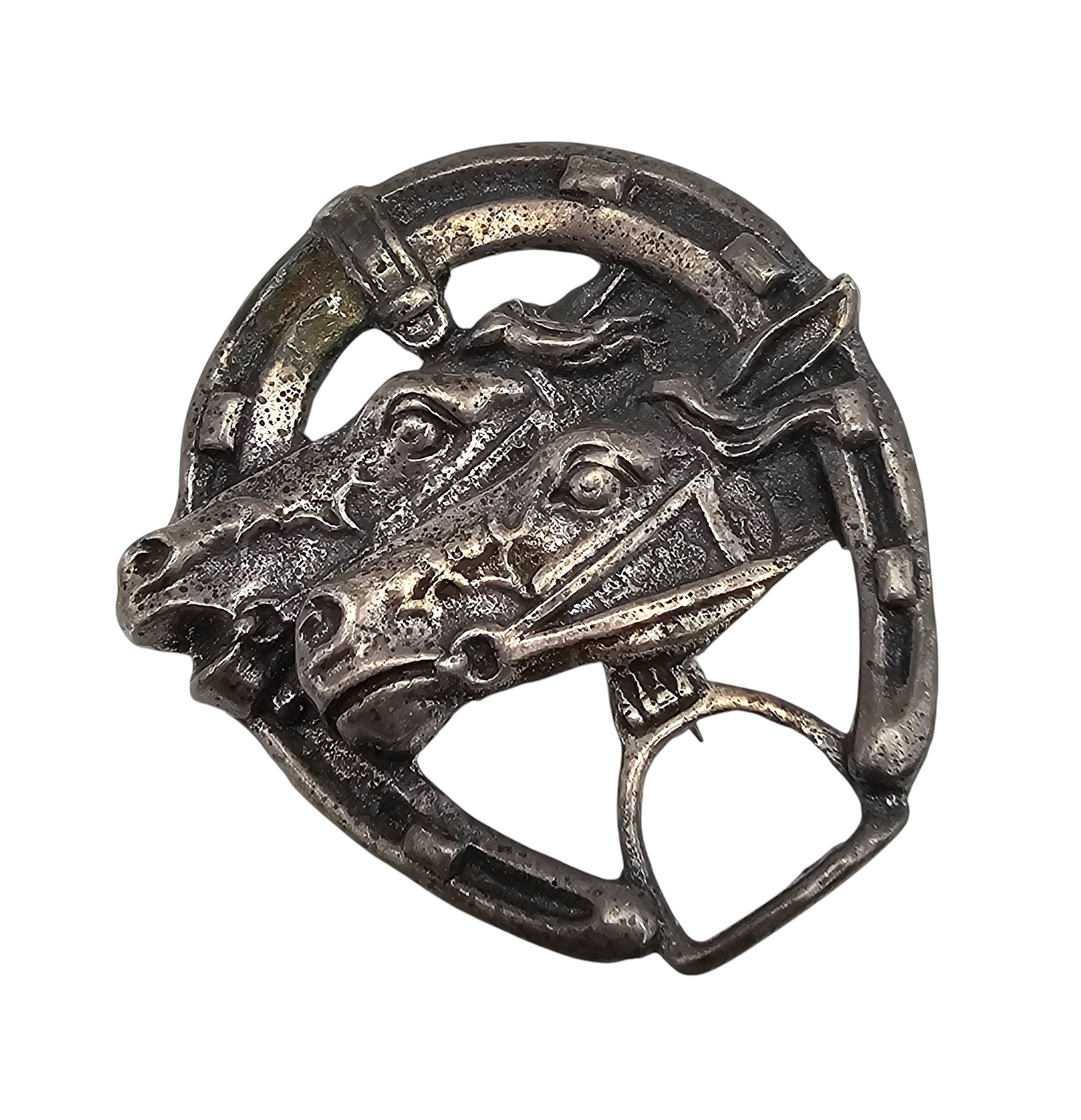 Sterling Silver Artisan Horses Horse Shoe Brooch 26.4 G