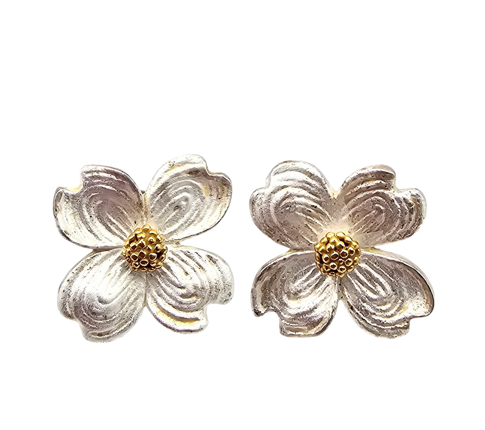 M Sterling Silver Dogwood Flower Earrings 2.2 G