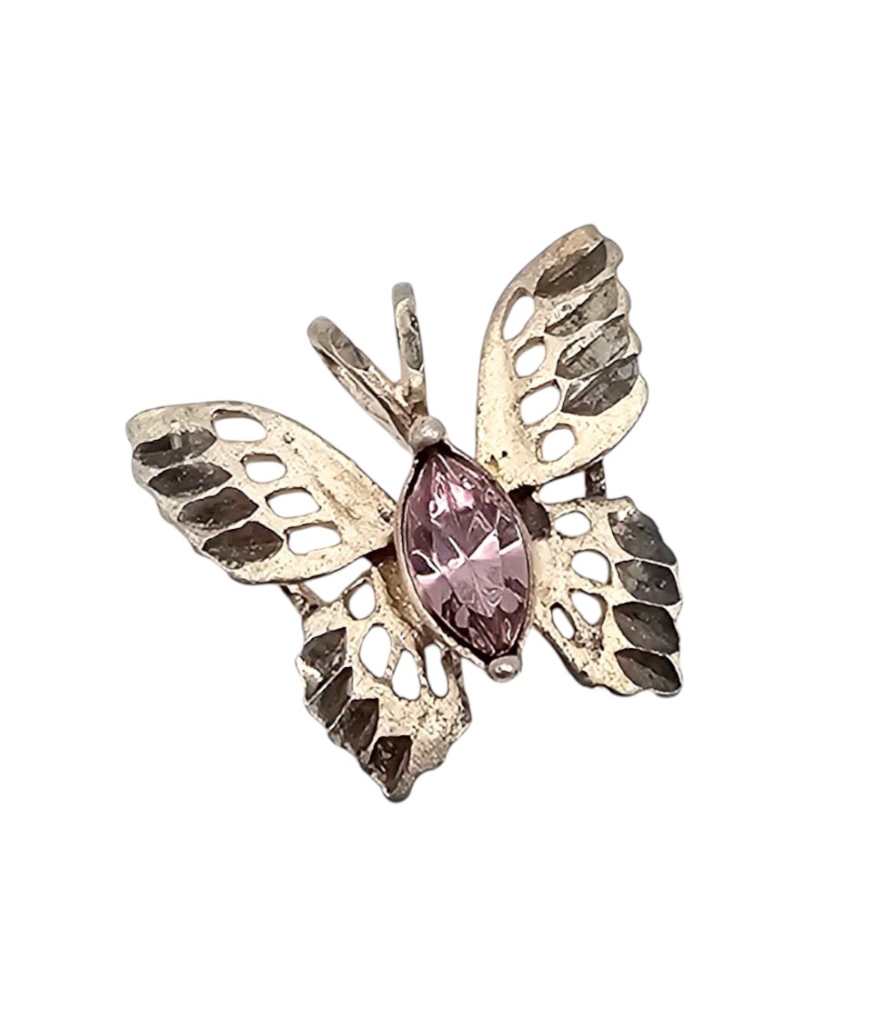By Rhinestone Sterling Silver Butterfly Pendant 1.8 G