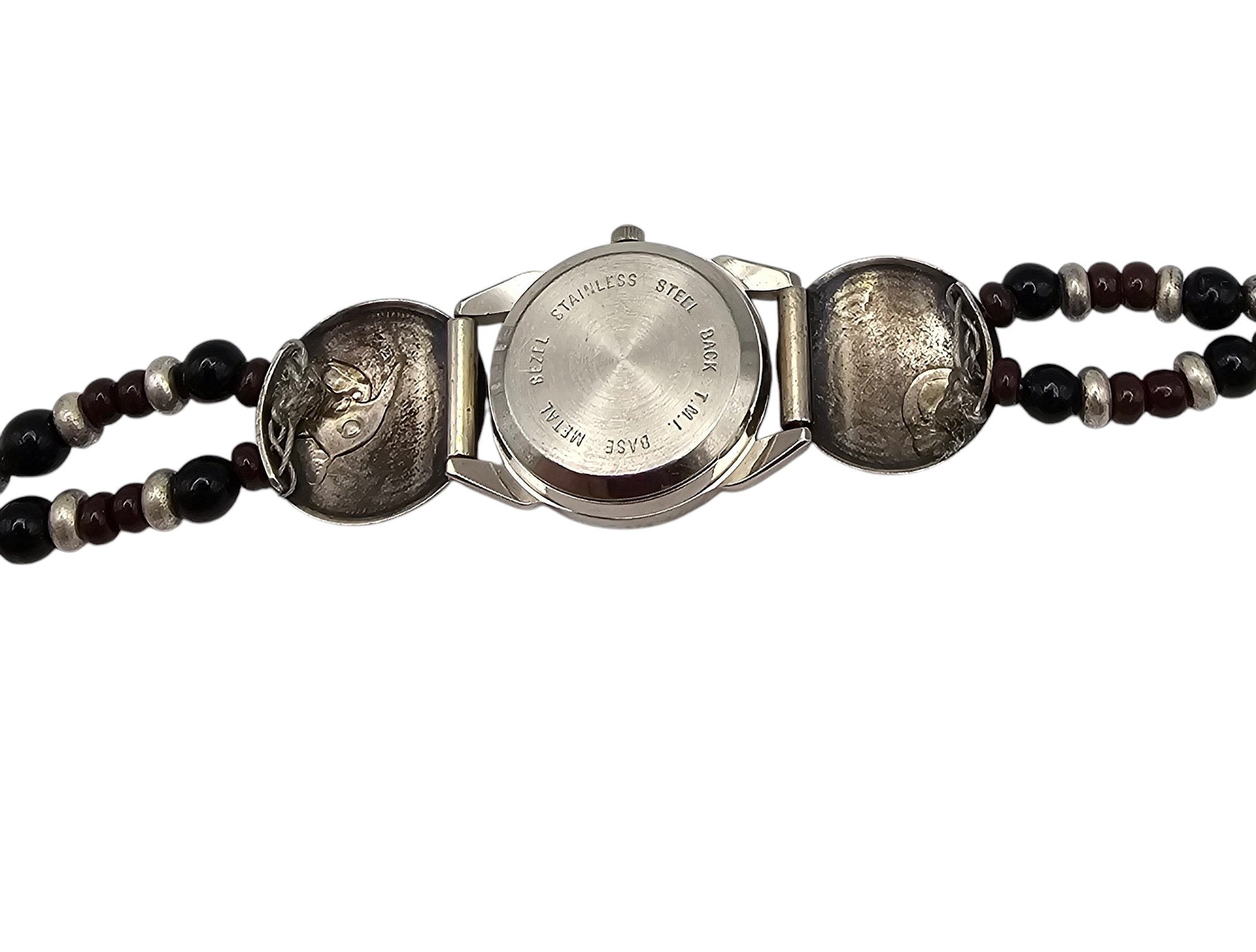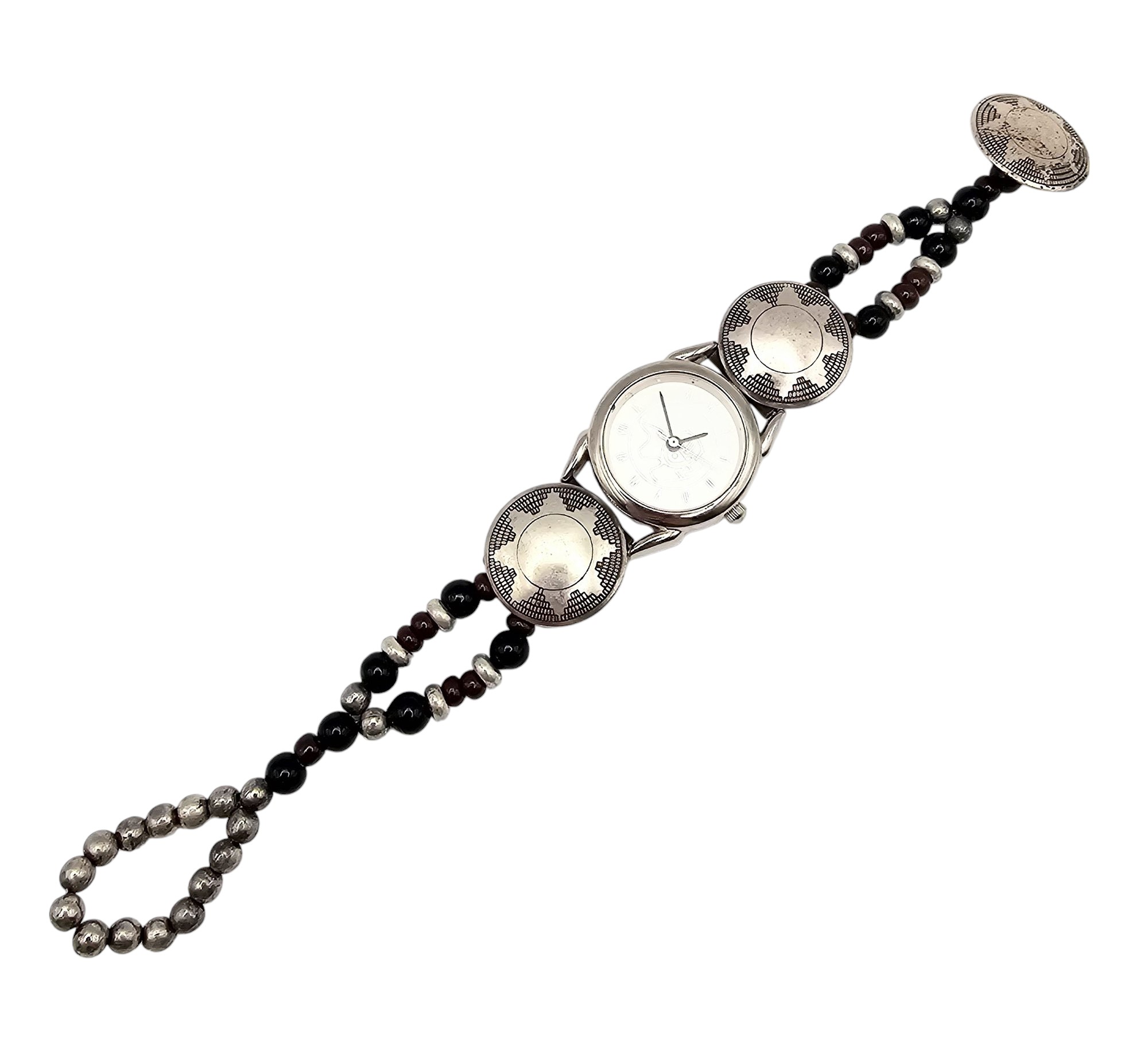 Southwestern Jasper Onyx Sterling Silver Stamped Toggle Watch 23.8 G