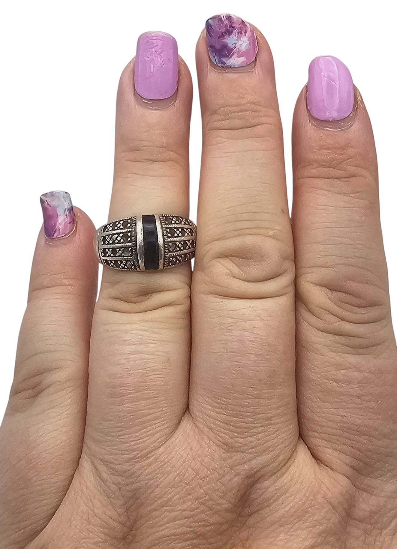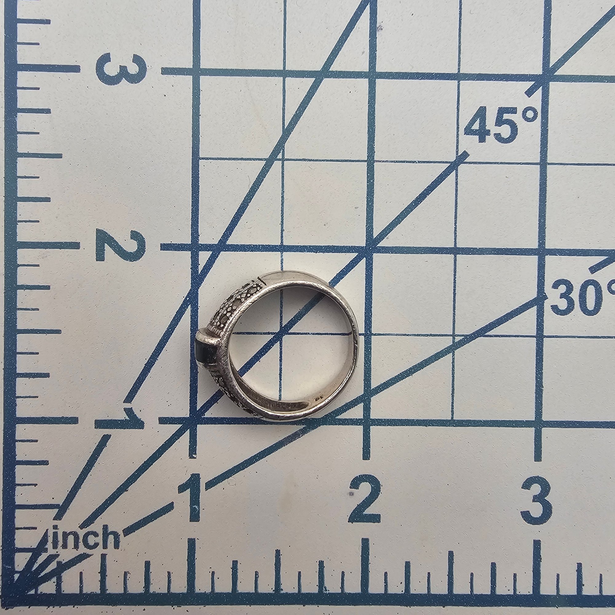 Onyx Marcasite Sterling Silver Ring Size 6.25 5.3 G