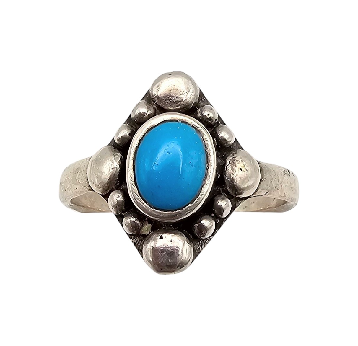 Southwestern Turquoise Sterling Silver Ring Size 8 3.9 G