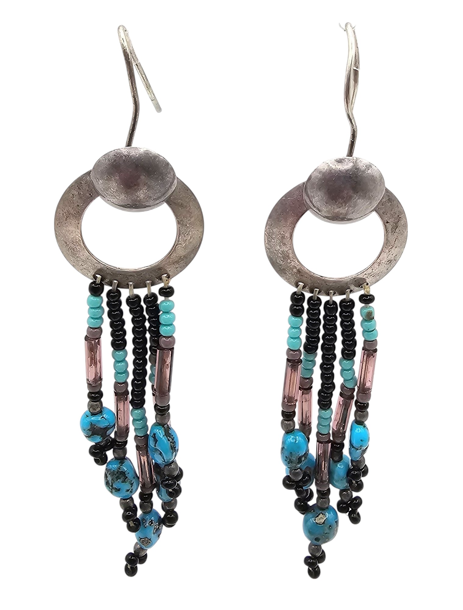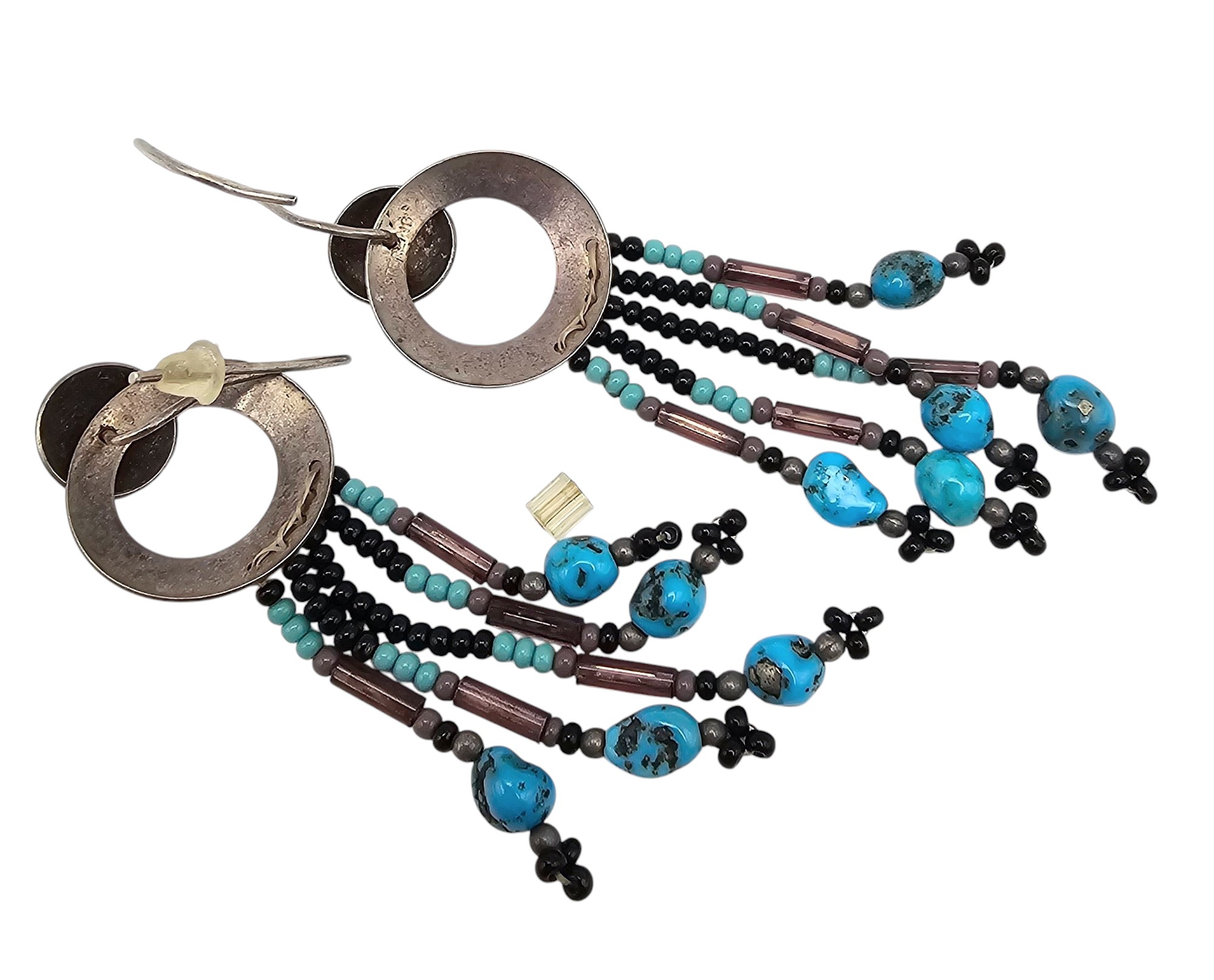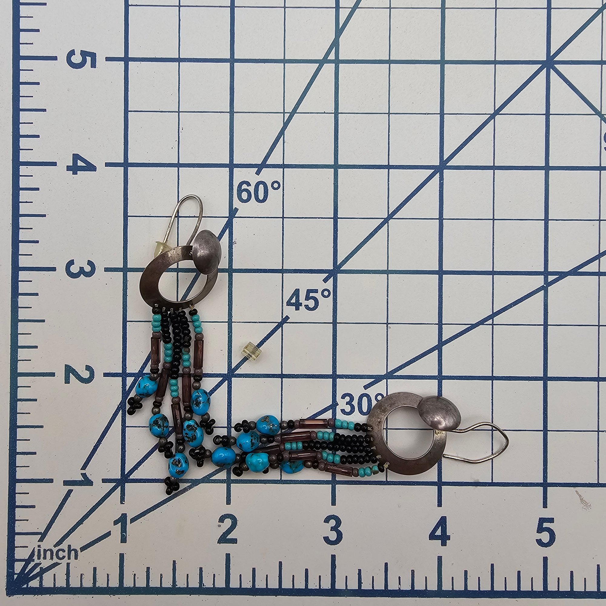 Southwestern Turquoise Bead Sterling Silver Drop Dangle Earrings 6.9 G