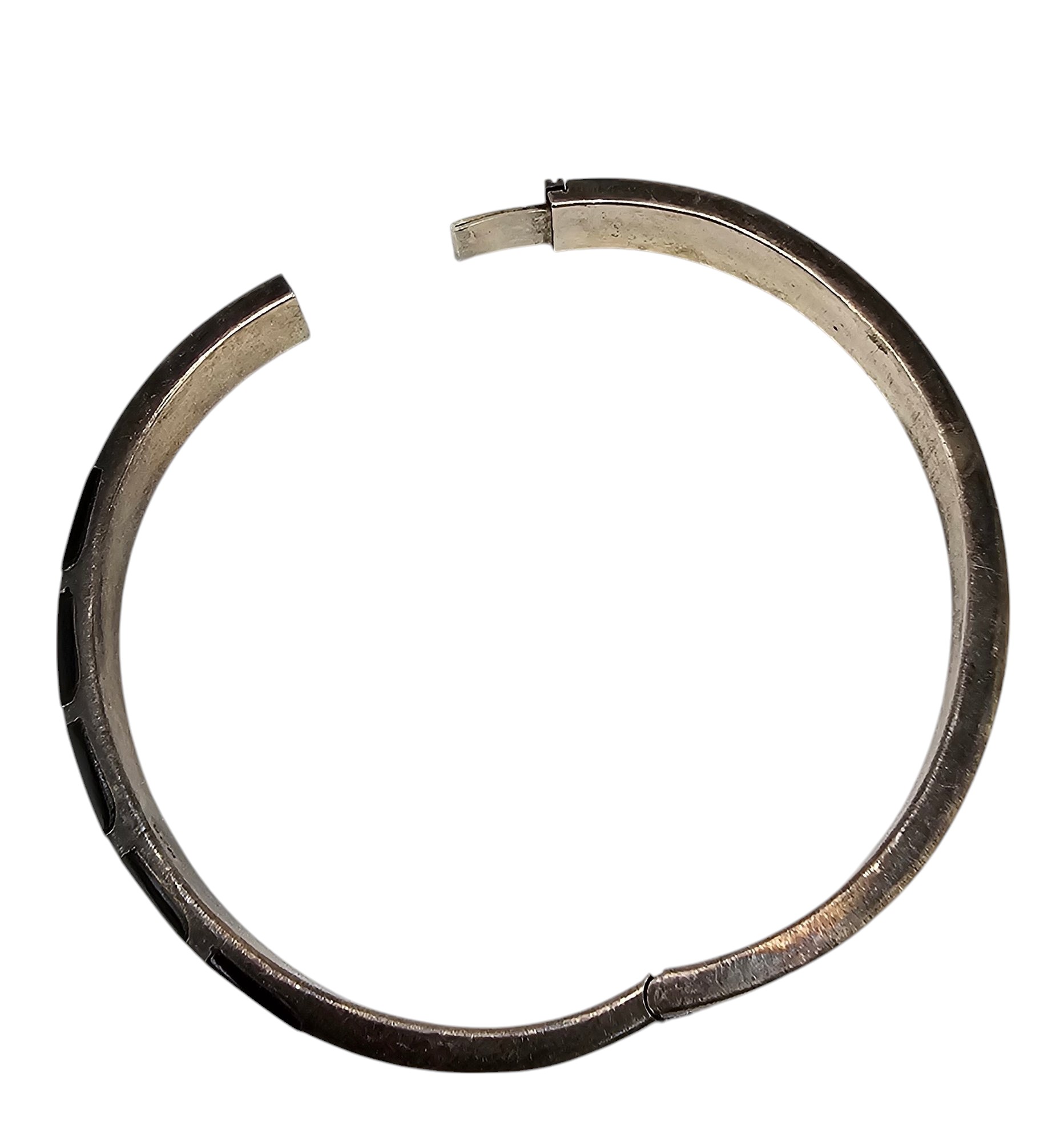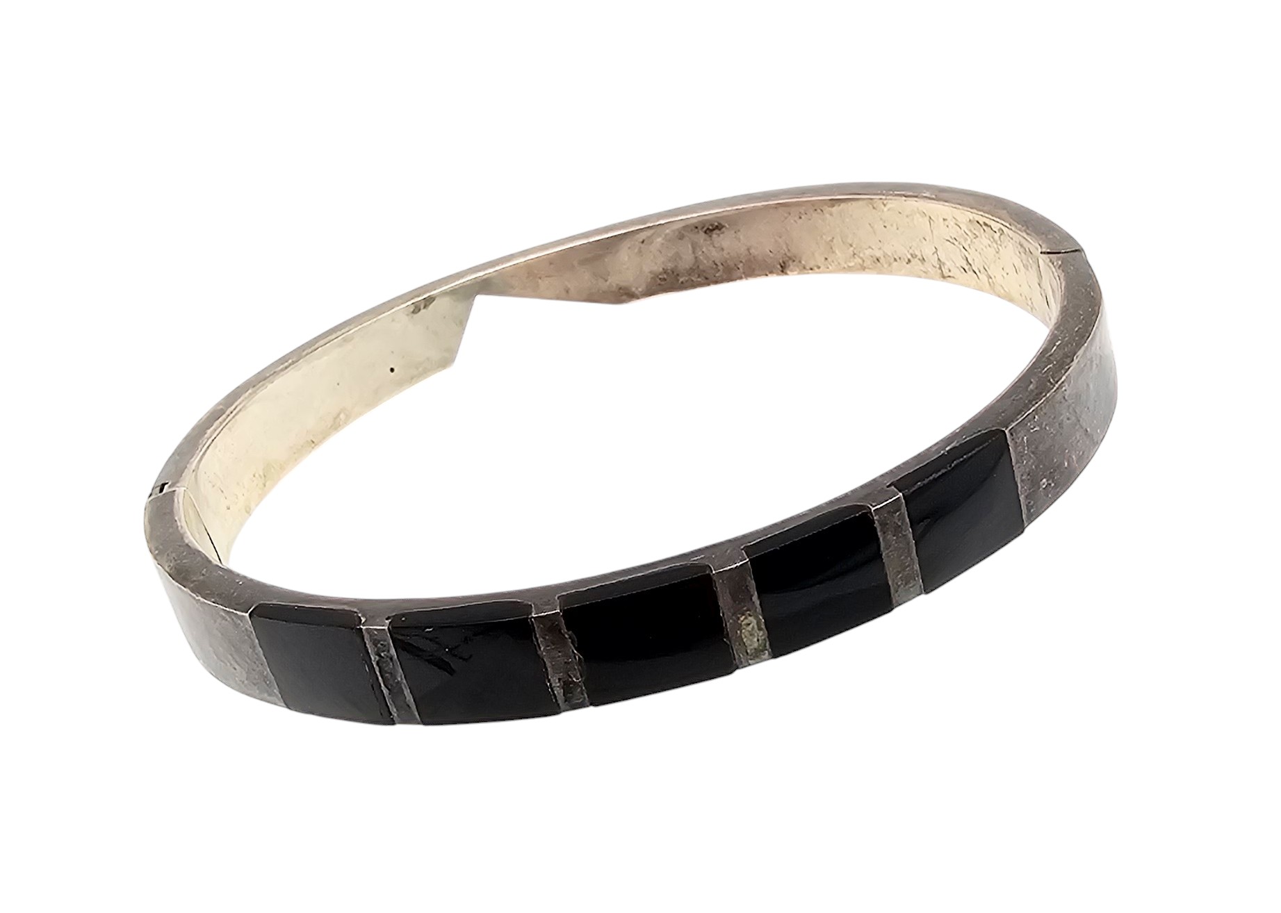 Southwestern Onyx Sterling Silver Hinge Bangle Bracelet 15.4 G
