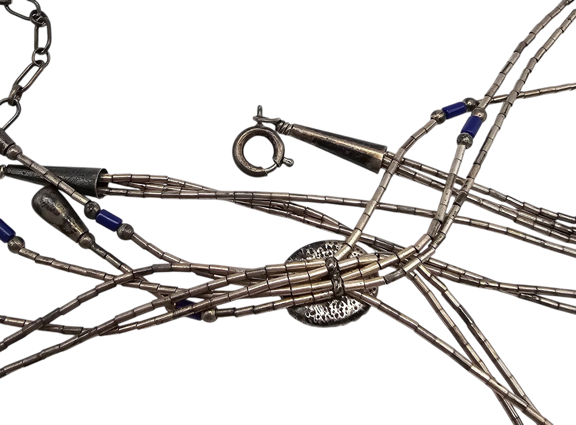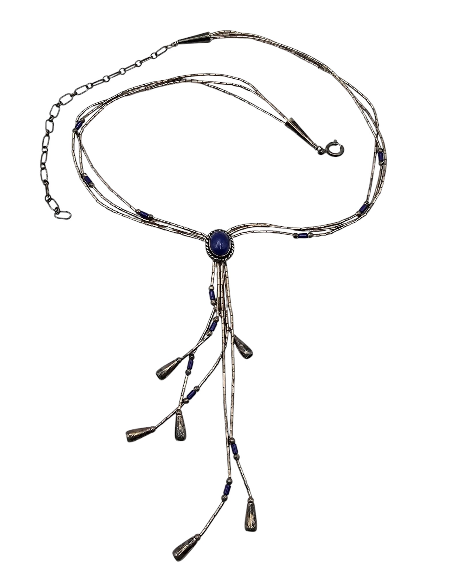 Southwestern Lapis Liquid Silver Sterling Silver Multi Strand Necklace 11.8 G