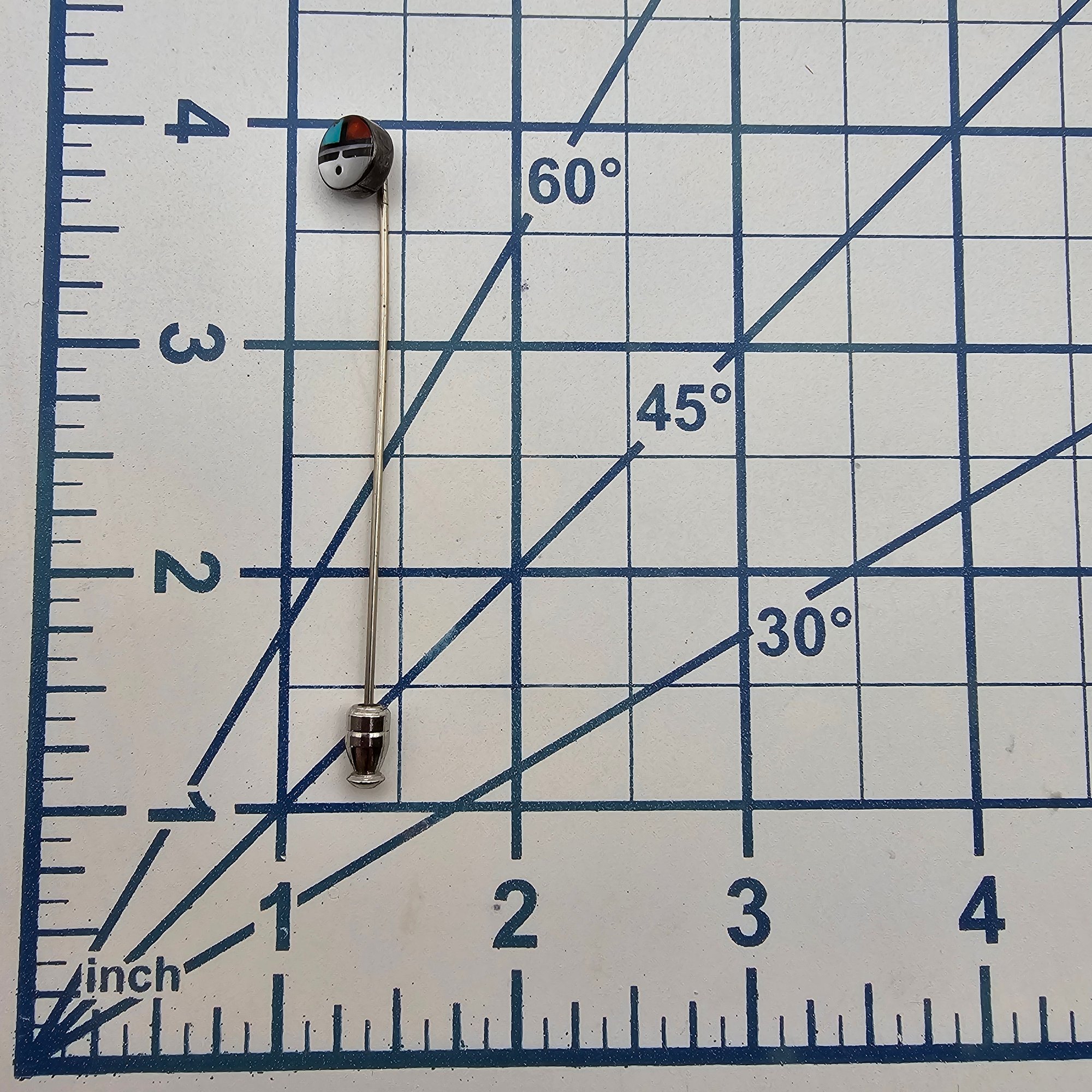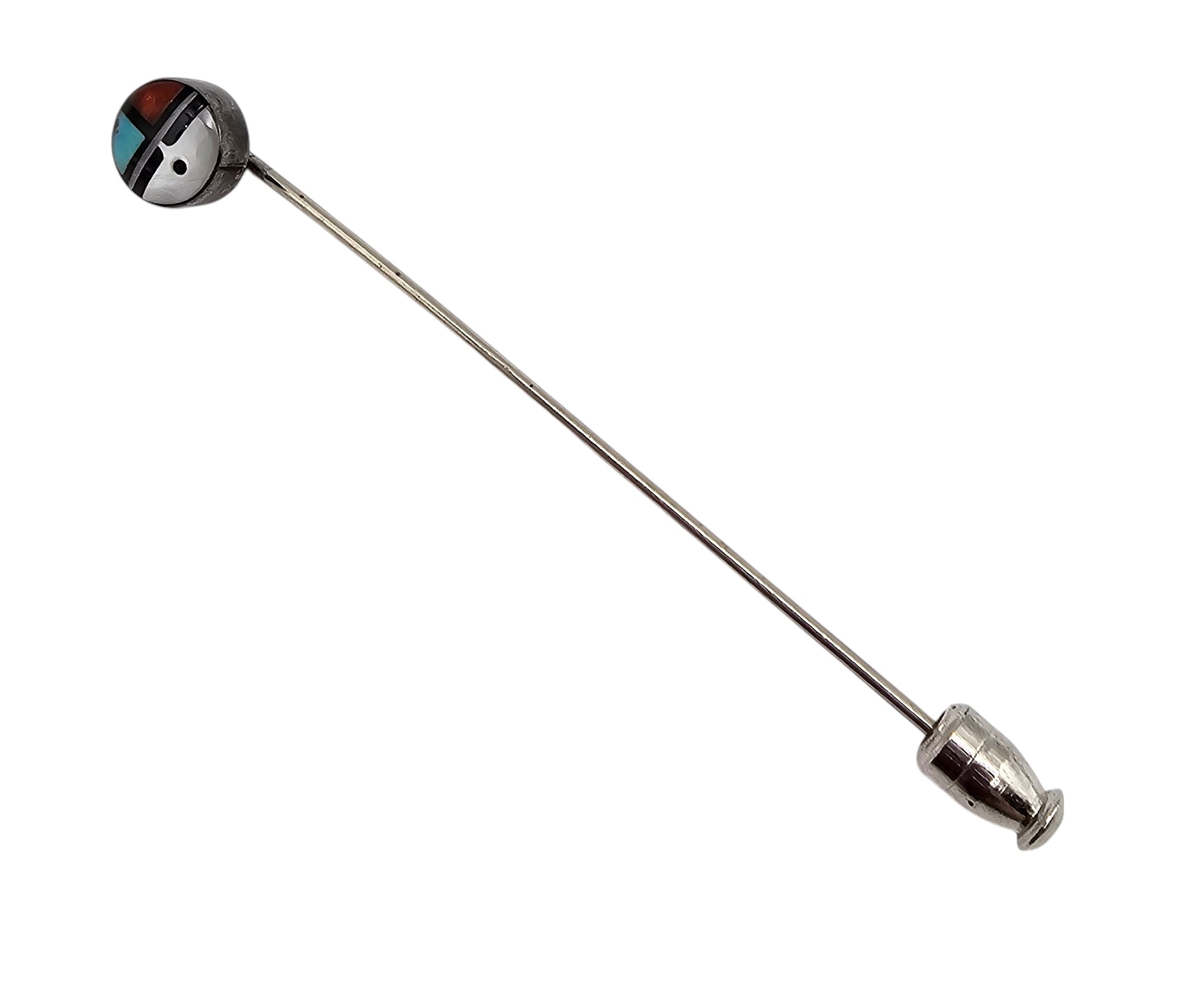 Zuni Turquoise Coral Onyx Mother of Pearl Sterling Silver Lapel Pin 1.9 G