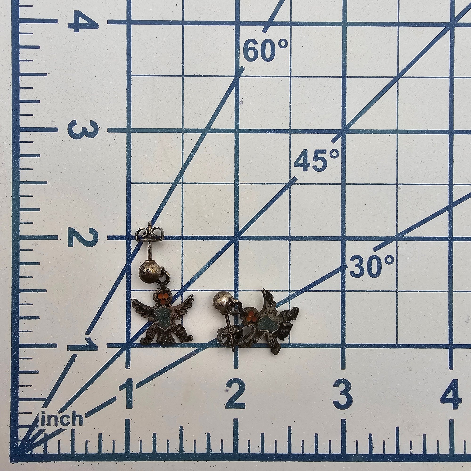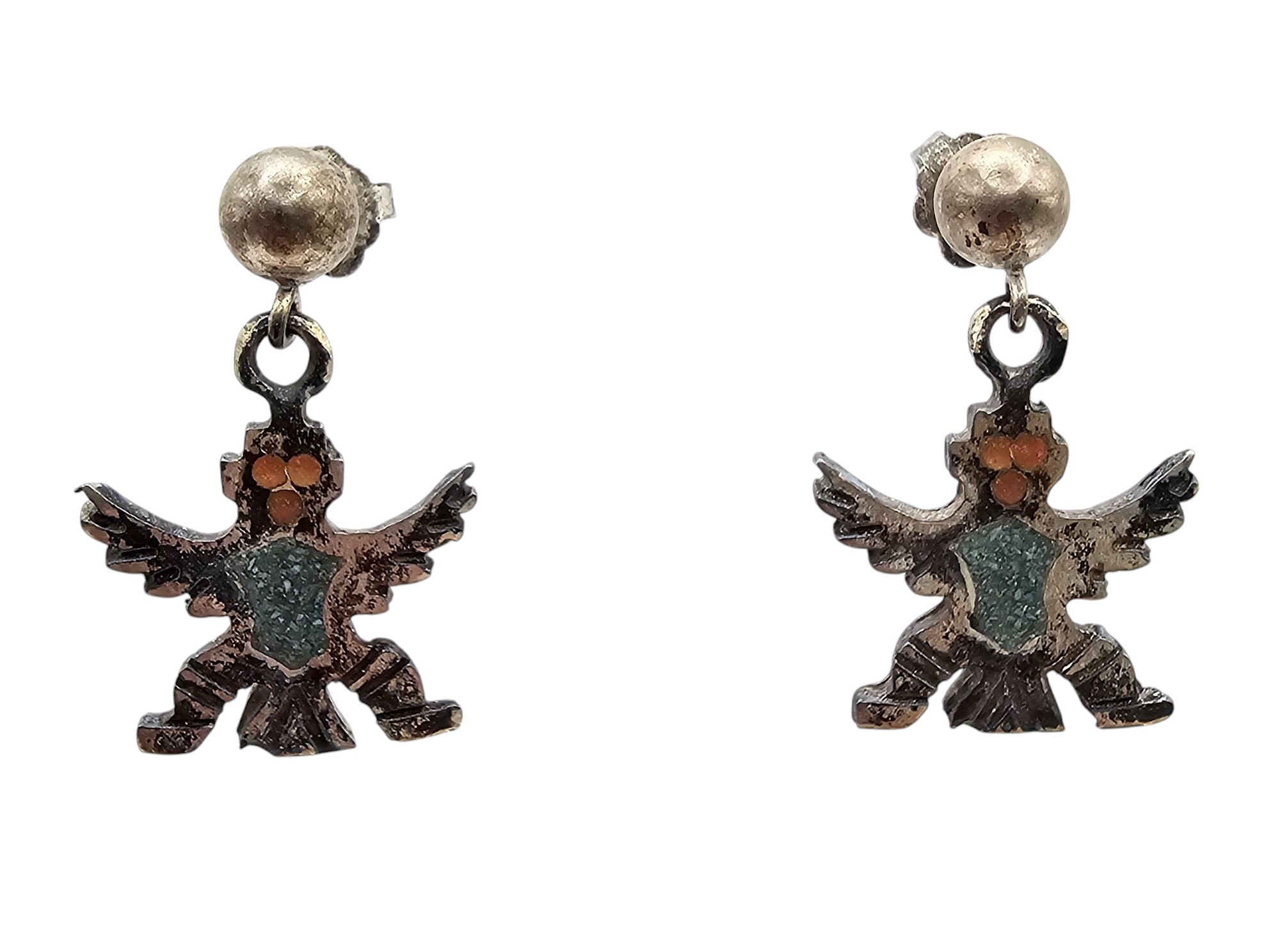 Native Crushed Turquoise Coral Sterling Silver Kachina Dancer Earrings 3.4 G