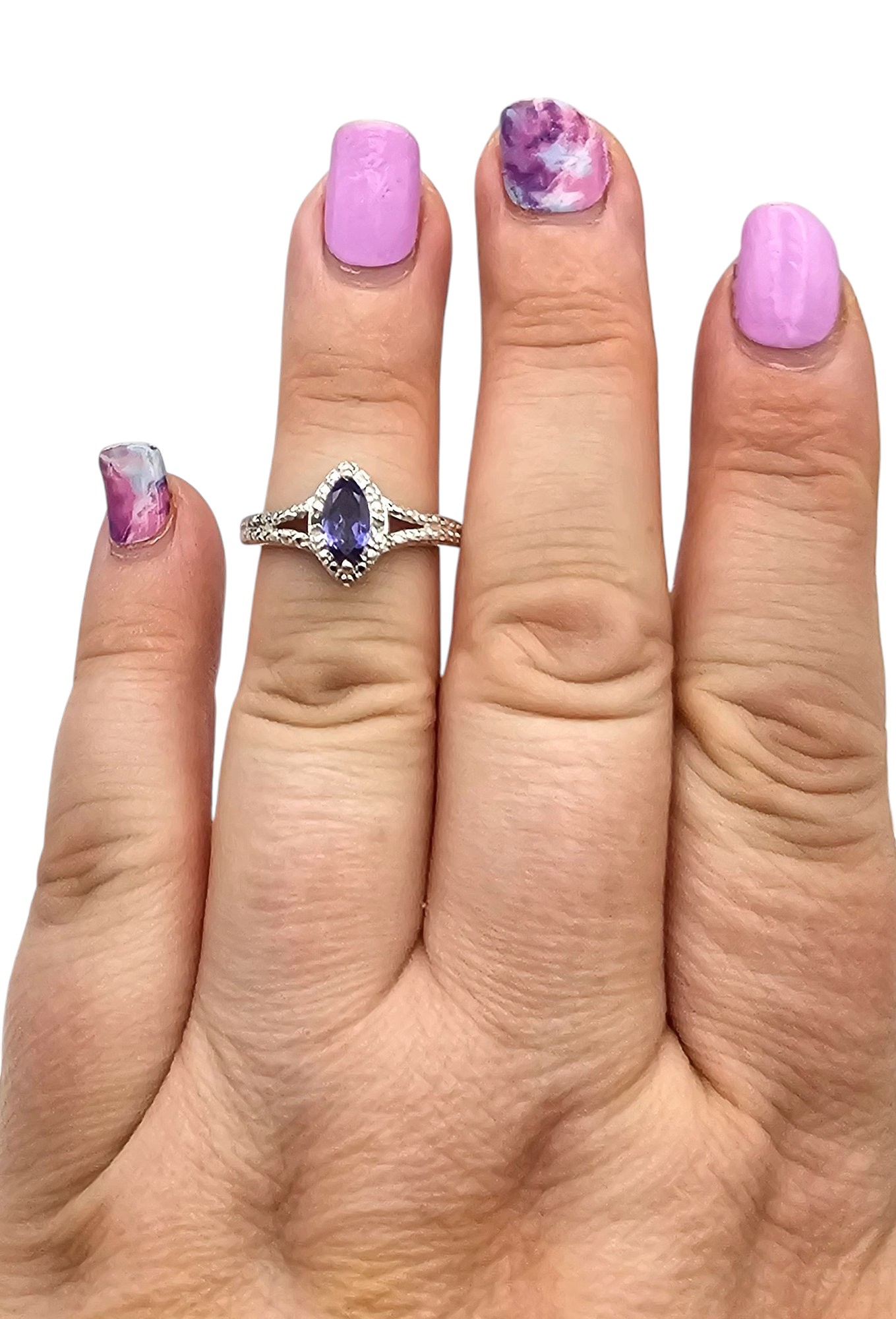 Rhinestone Sterling Silver Cocktail Ring Size 5.75 2.2 G