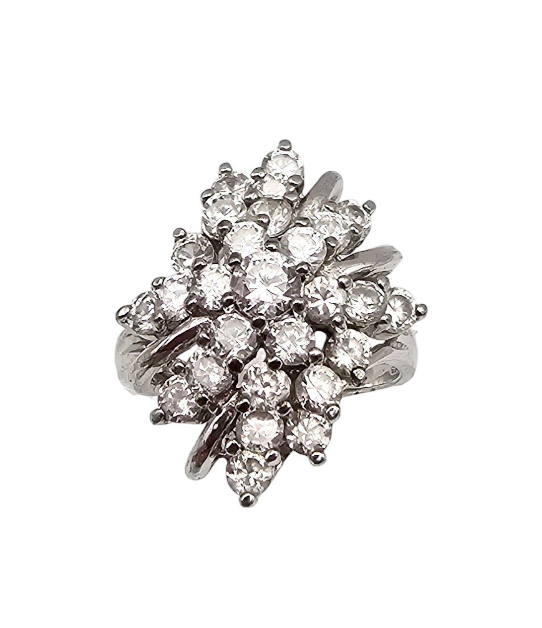 Rhinestone Sterling Silver Cocktail Ring Size 7.5 6.6 G