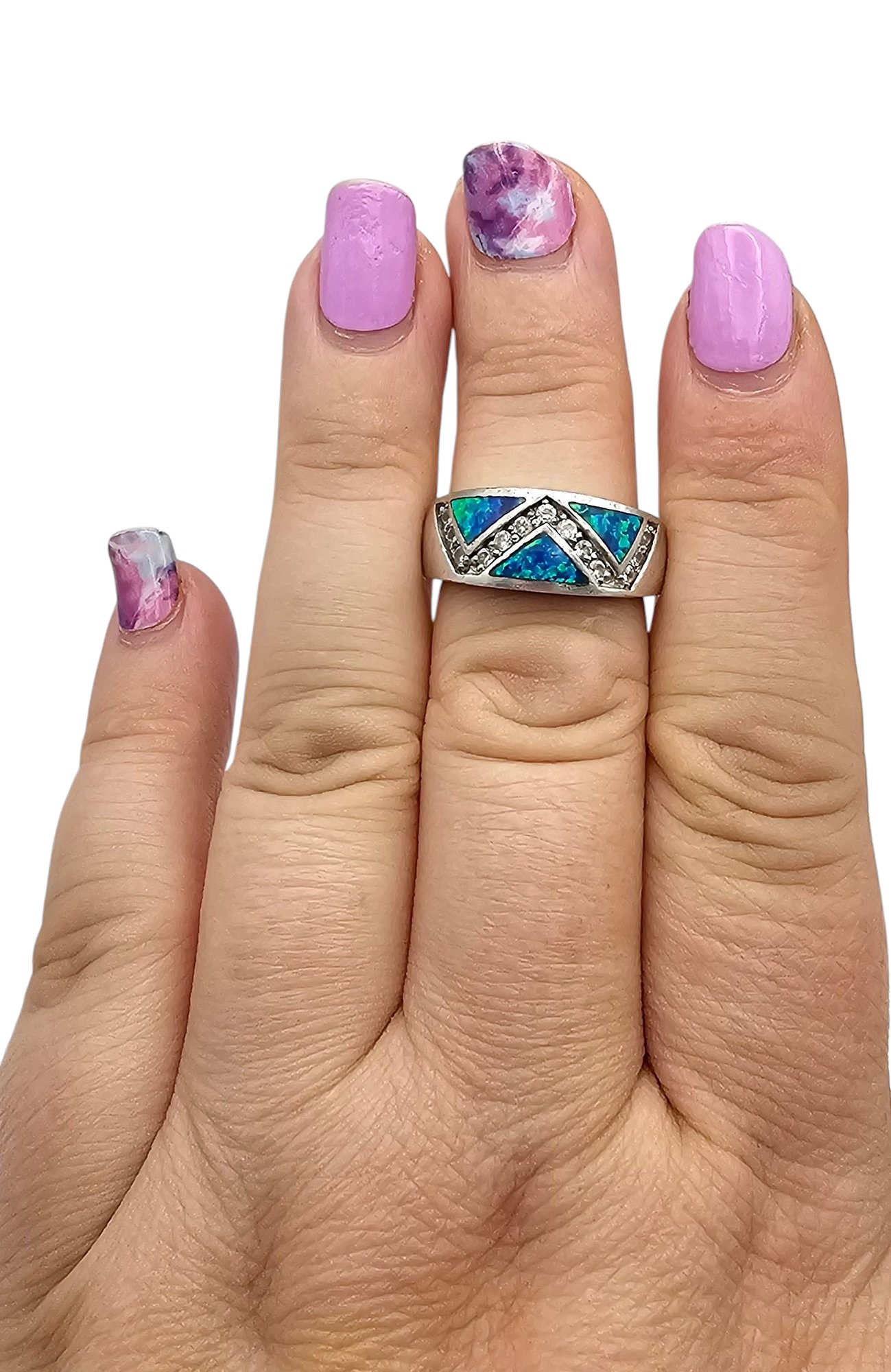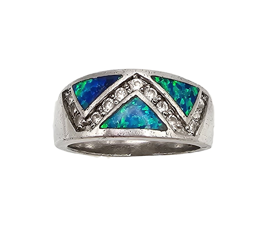 Lab Opal Sterling Silver Ring Size 7.25 5.2 G